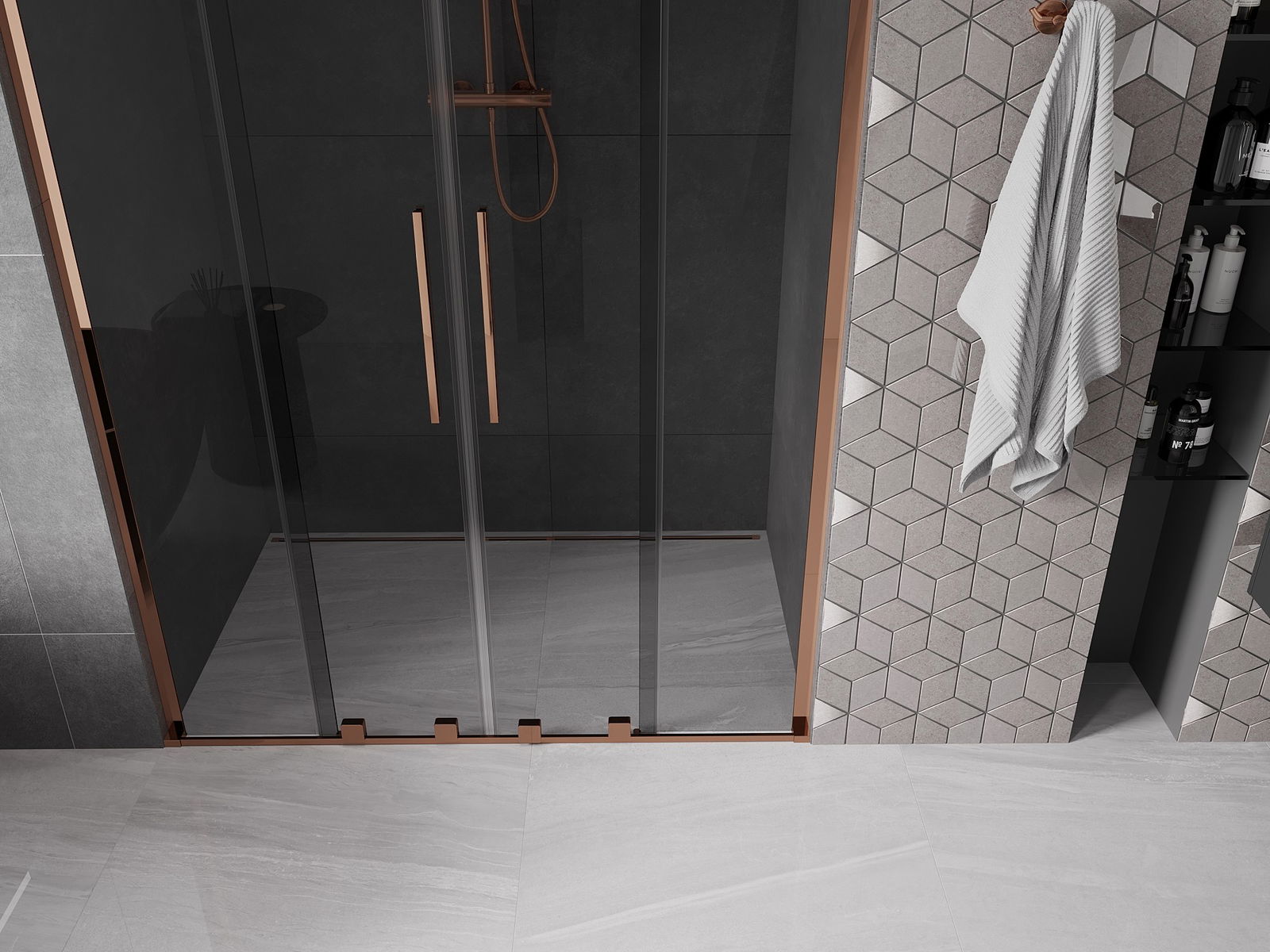 Mexen Velar L Duo uși de duș glisante 160 cm, grafit, aur roz - 871-160-003-42-60