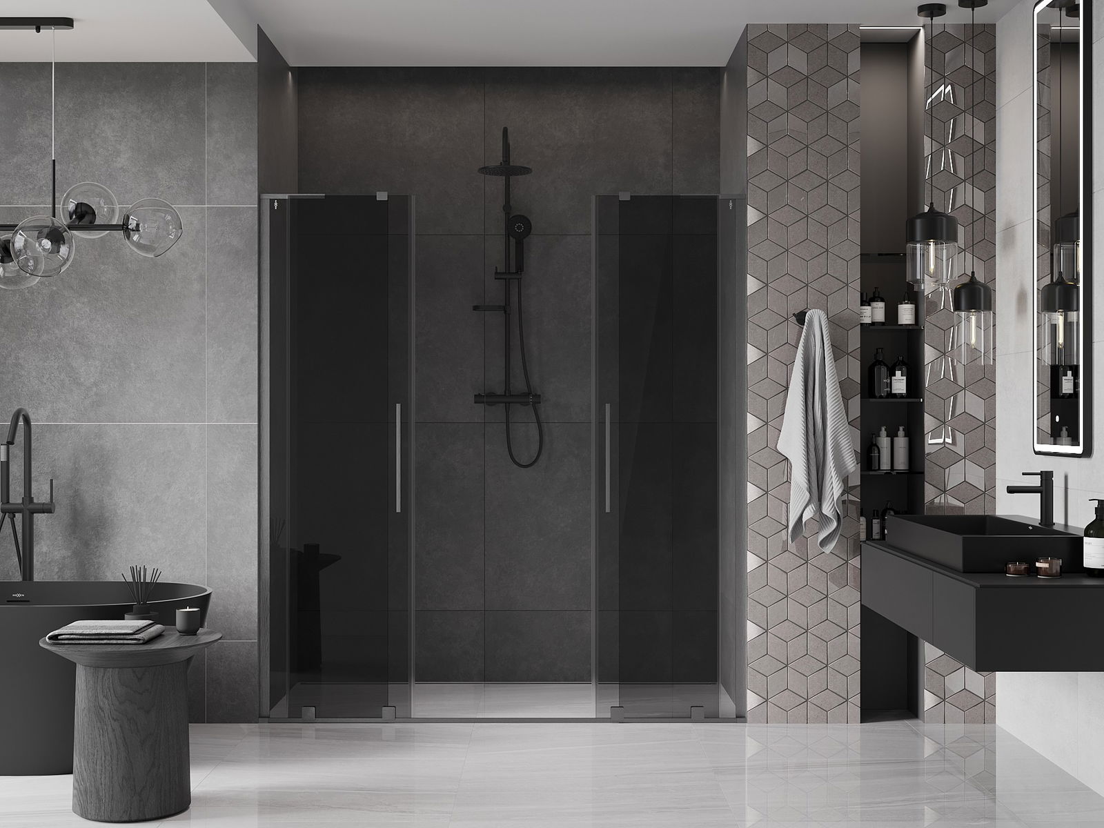 Mexen Velar L Duo uși de duș glisante 180 cm, grafit, gri pistol periat - 871-180-003-42-66