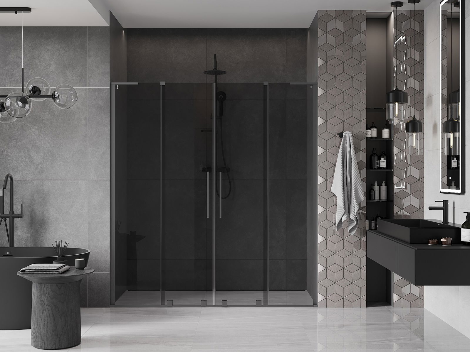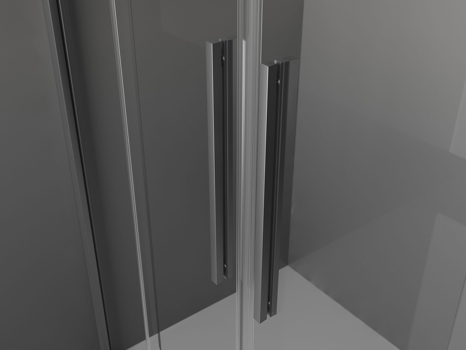 Mânerul practic și confortabil este realizat din oțel inoxidabil. Forma modernă, combinată cu un finisaj asortat cu culoarea profilelor, conferă ansamblului un aspect modern și elegant, subliniind estetica fiecărei băi.
