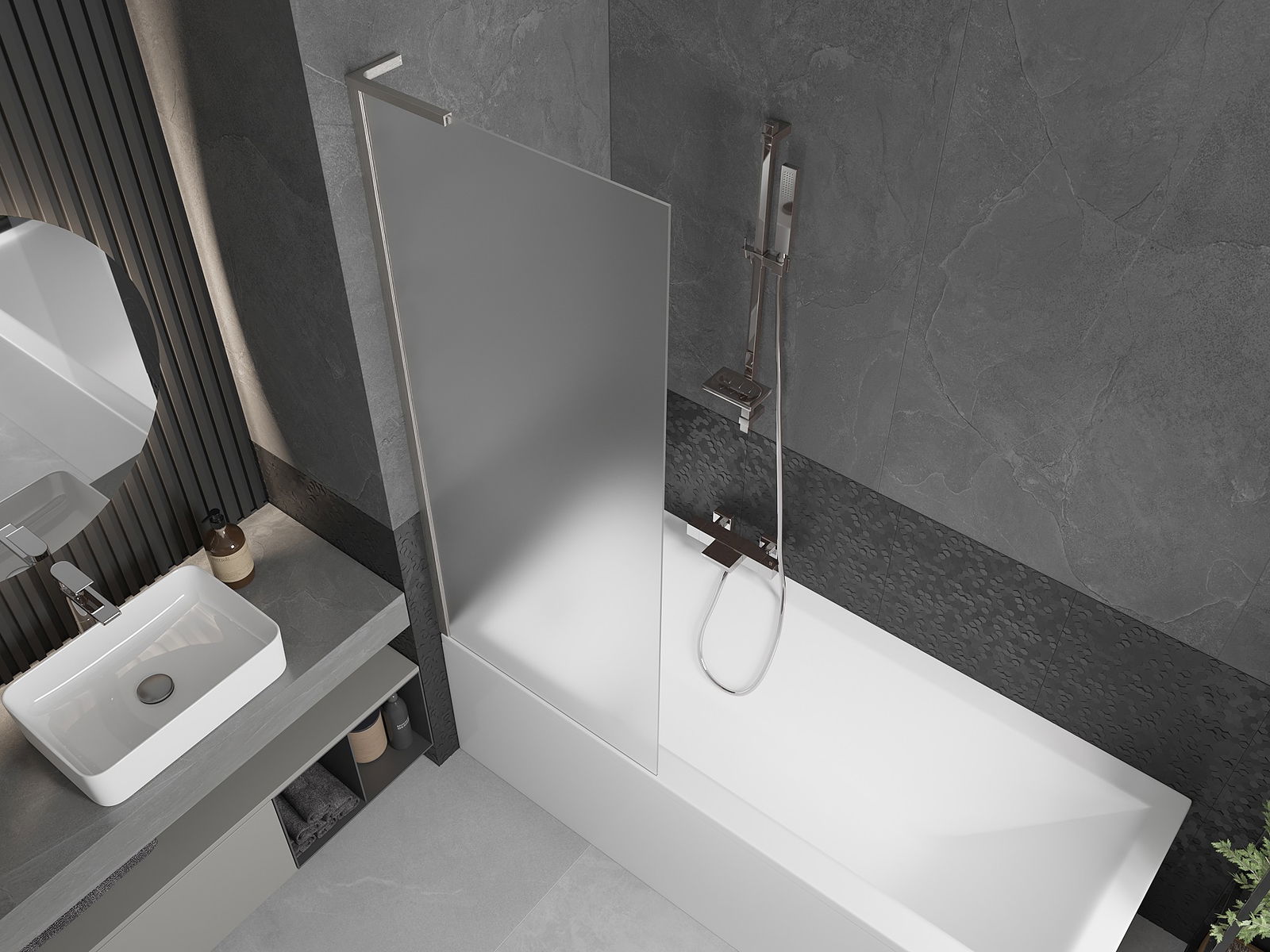 O protecție eficientă împotriva vărsării apei în timpul băii. Paravanul are garnituri care se potrivesc perfect cu suprafața de sticlă și marginea căzii. O soluție funcțională care asigură siguranță și întreținere ușoară a curățeniei.