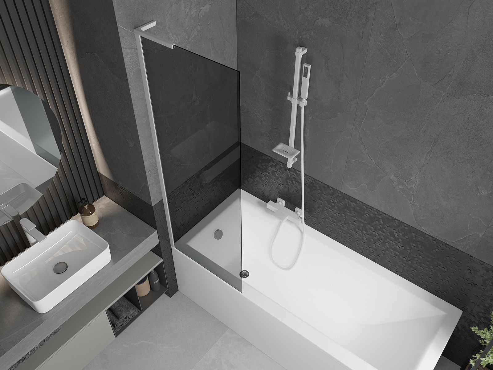 Mexen Next L panel de cadă cu un singur panou 60 x 150 cm, grafit, alb - 895-060-000-03-40-20