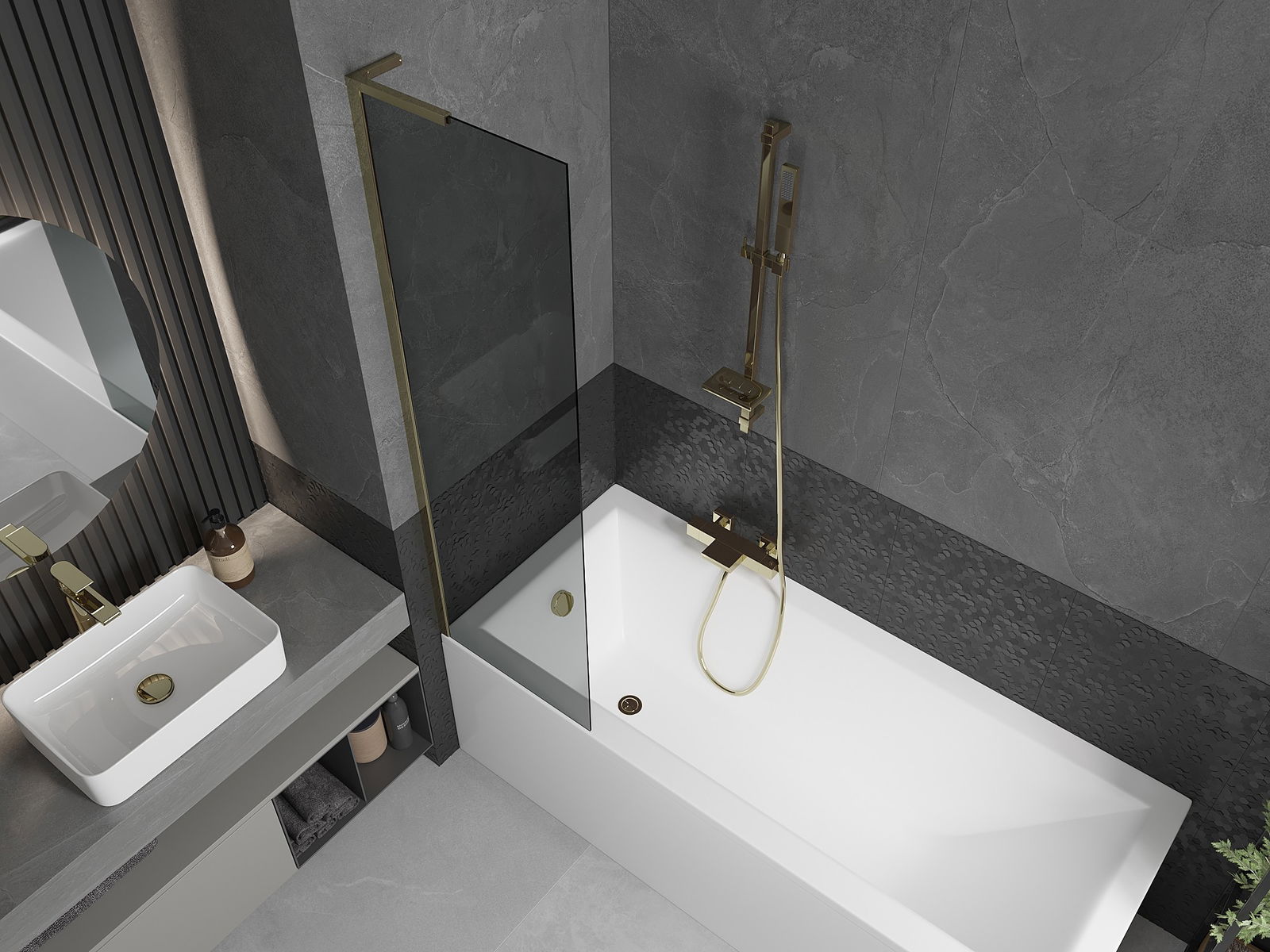 Mexen Next L paravan pentru cadă cu 1 canat 50 x 150 cm, grafit, auriu - 895-050-000-03-40-50