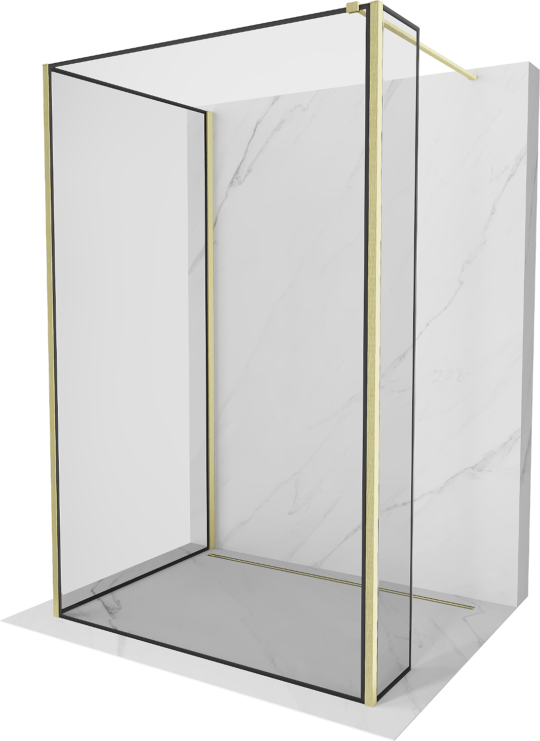 Mexen Kioto perete de duș Walk-in 90 x 90 x 40 cm, ramă neagră, auriu periat - 800-090-090-221-55-70-040