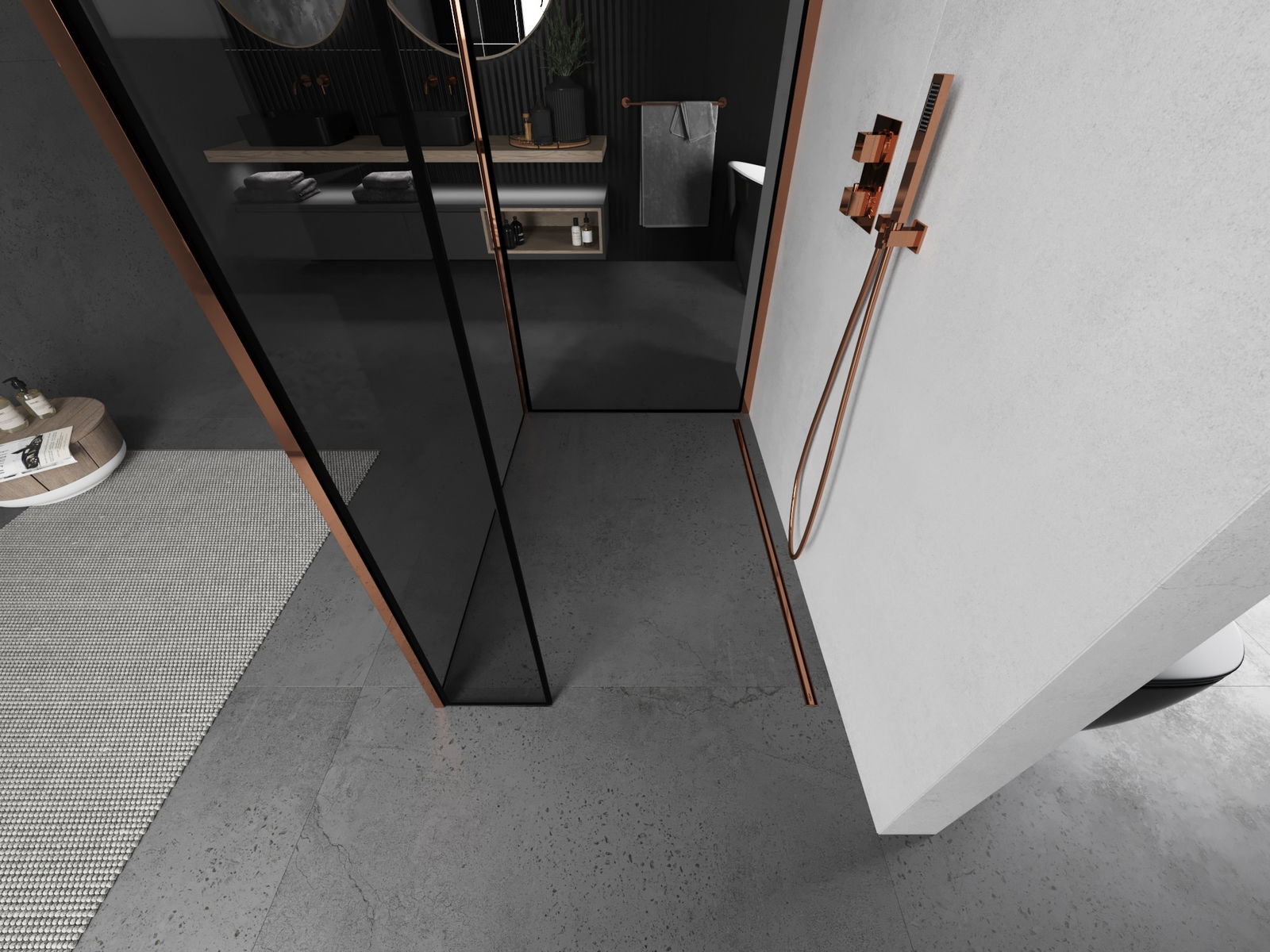 Mexen Kioto perete de duș Walk-in 120 x 90 x 40 cm, ramă neagră, aur roz - 800-120-090-221-60-70-040