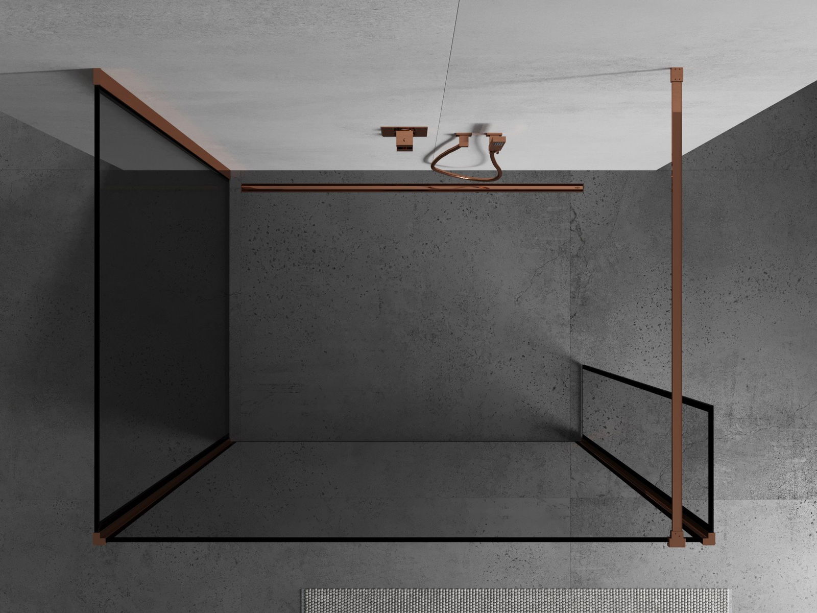 Mexen Kioto perete de duș Walk-in 140 x 90 x 40 cm, ramă neagră, aur roz - 800-140-090-221-60-70-040