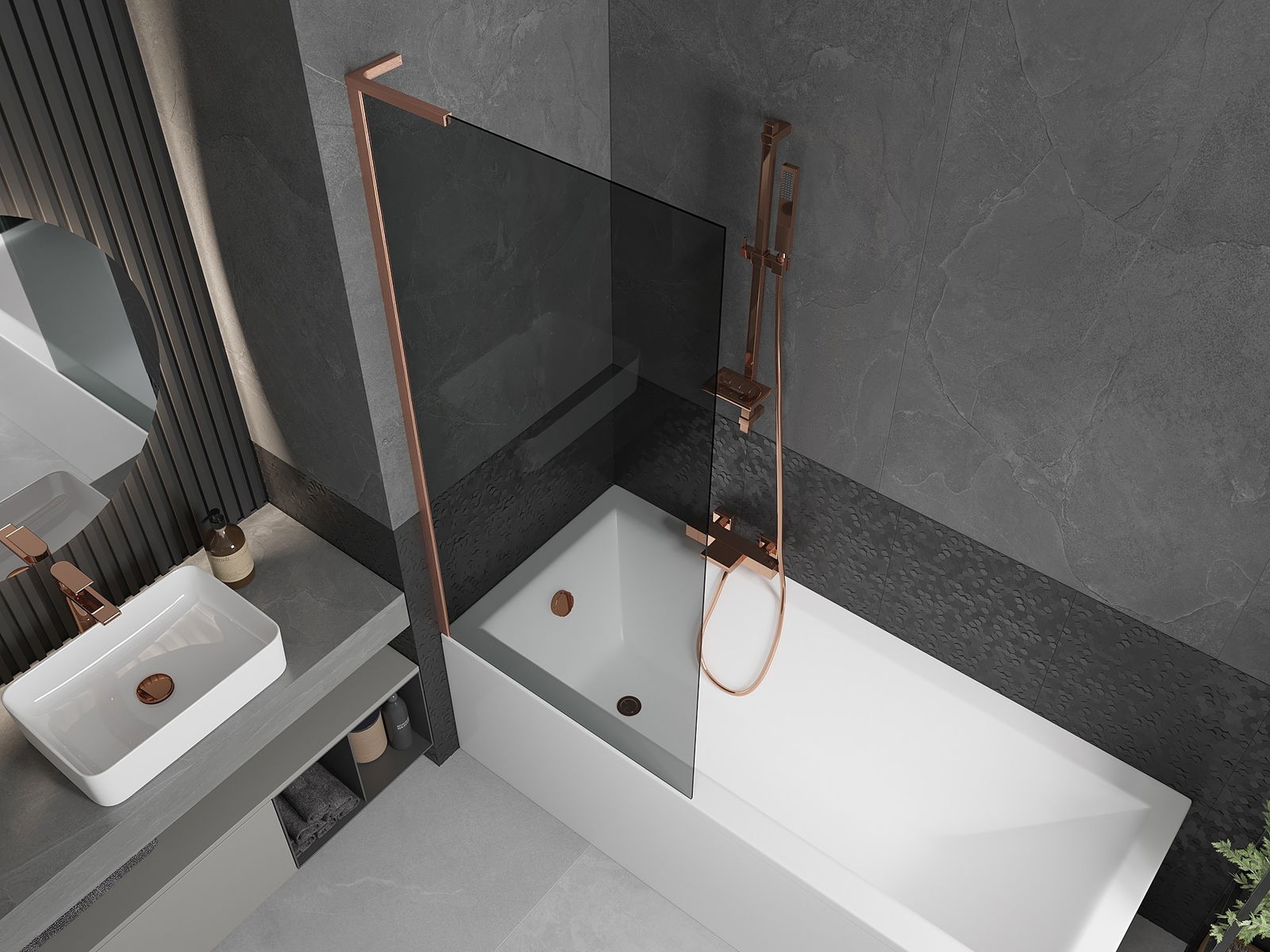 Mexen Next L panou de baie cu un singur panou 80 x 150 cm, grafit, cupru periat - 895-080-000-03-40-65