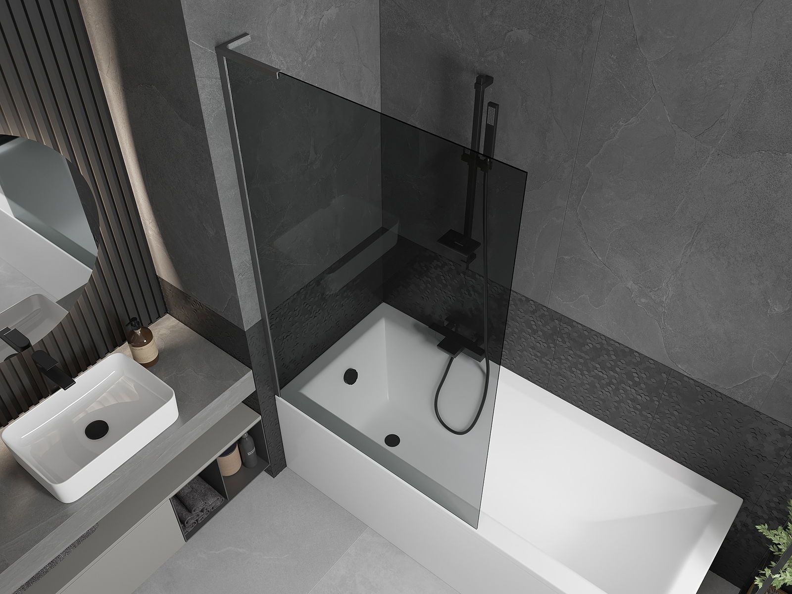 Datorită utilizării unui sistem universal de montare, paravanul poate fi montat pe partea dreaptă sau pe partea stângă, în funcție de necesități. În acest fel, poți proiecta cu ușurință un duș adaptat la spațiul băii.