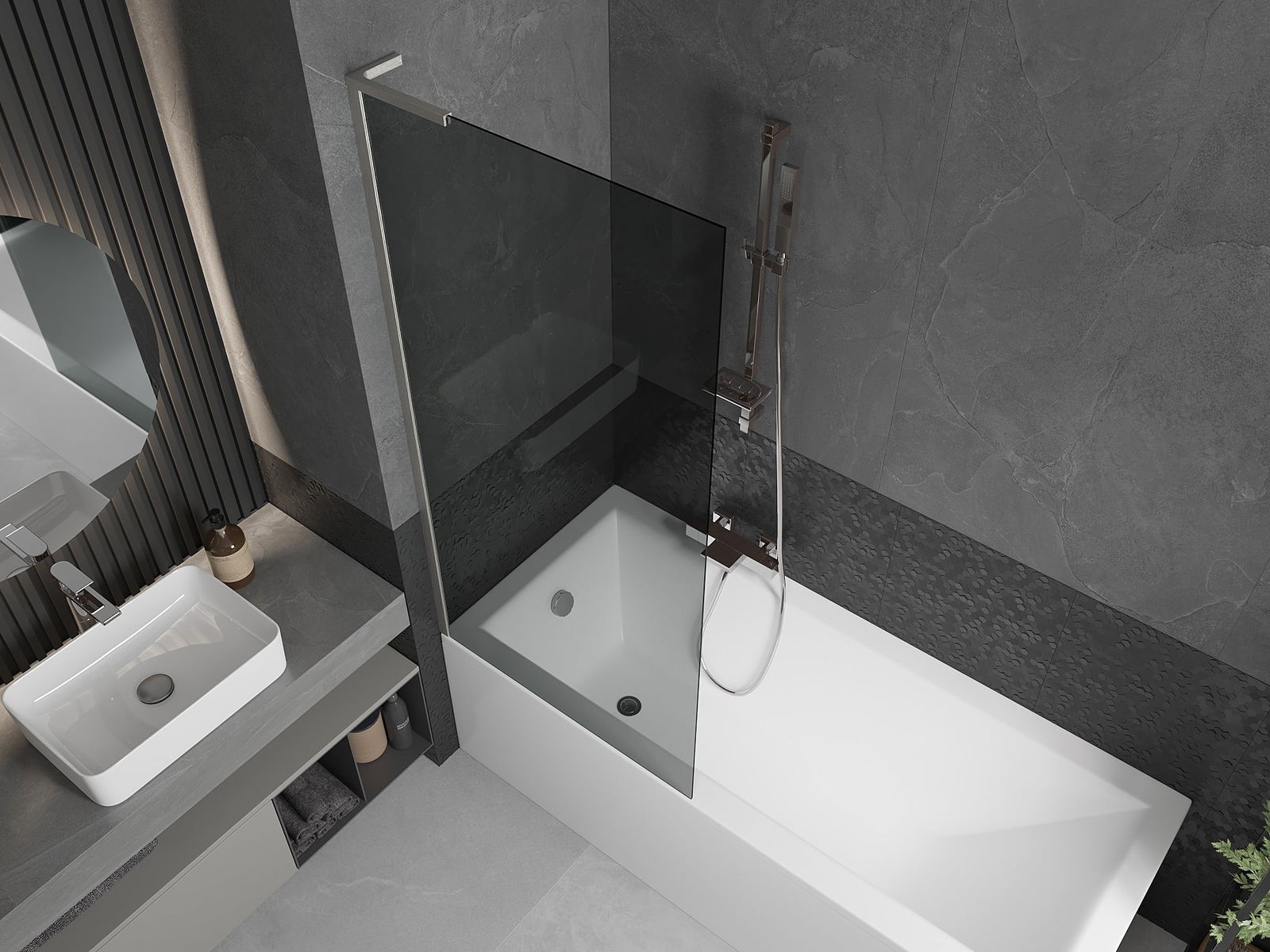 Datorită utilizării unui sistem universal de montare, paravanul poate fi montat pe partea dreaptă sau pe partea stângă, în funcție de necesități. În acest fel, poți proiecta cu ușurință un duș adaptat la spațiul băii.