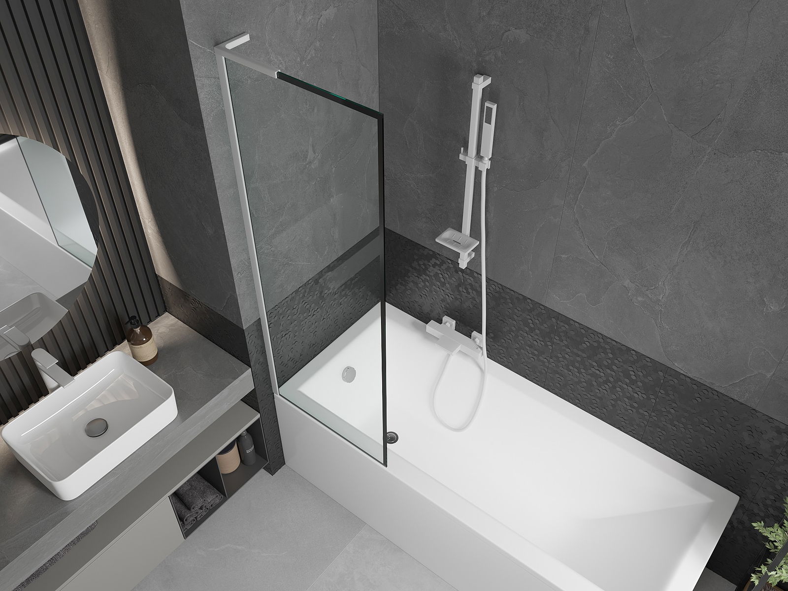 Datorită utilizării unui sistem universal de montare, paravanul poate fi montat pe partea dreaptă sau pe partea stângă, în funcție de necesități. În acest fel, poți proiecta cu ușurință un duș adaptat la spațiul băii.
