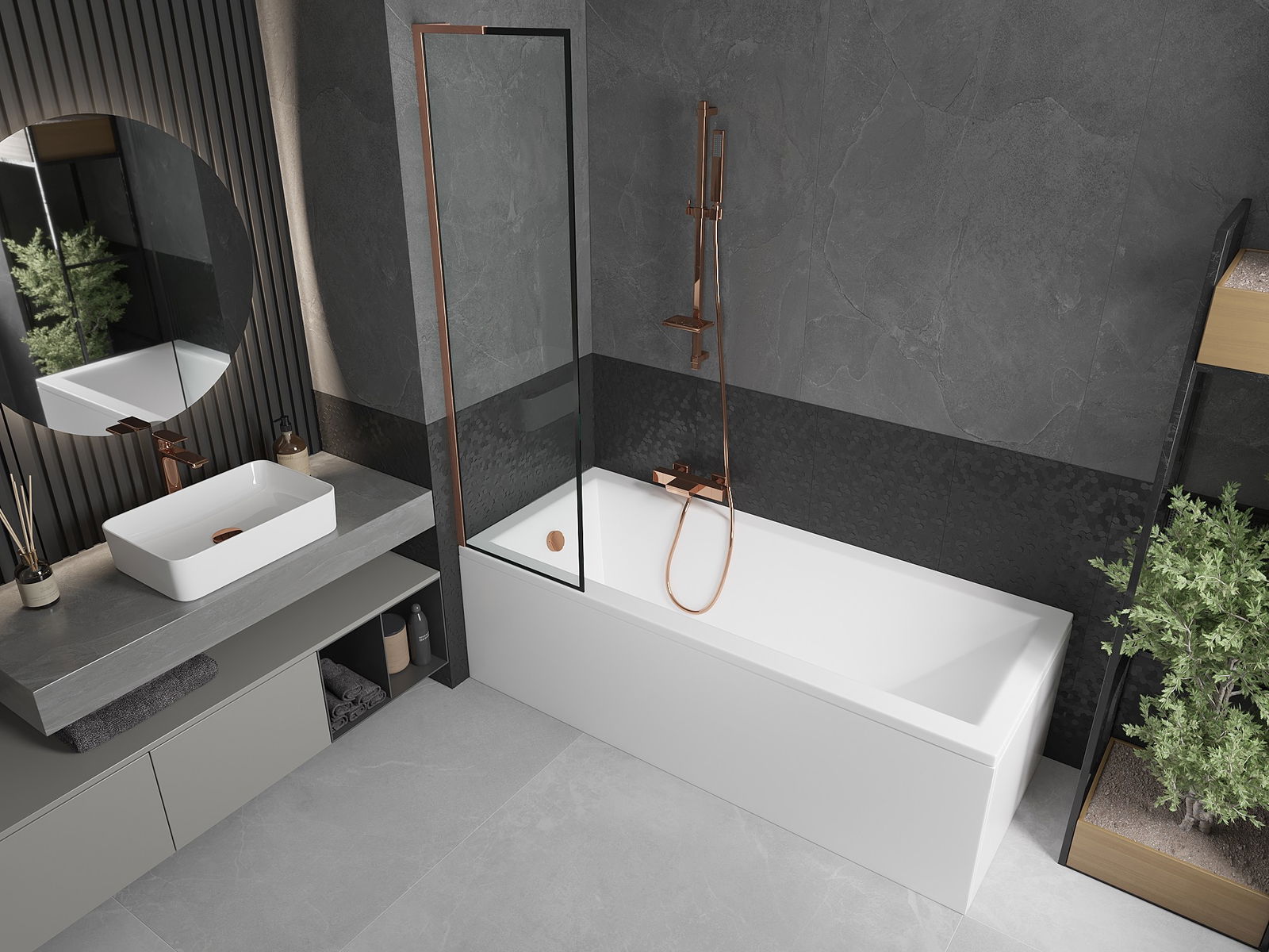 Mexen Next L paravan cadă 1-canat 50 x 150 cm, cadru negru, cupru periat - 895-050-000-03-70-65