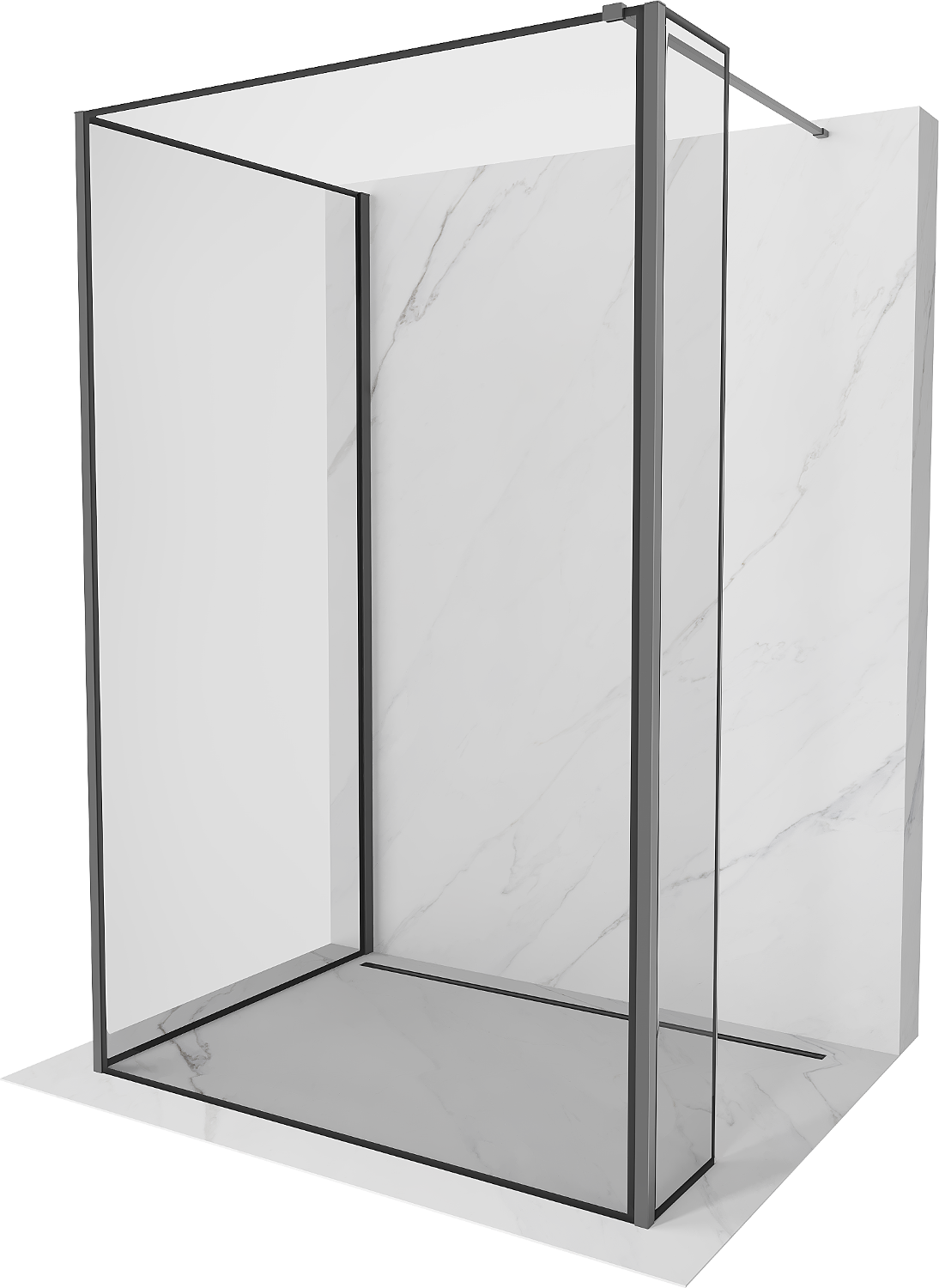 Mexen Kioto perete de duș Walk-in 130 x 70 x 40 cm, cadru negru, metal armat - 800-130-070-221-95-70-040