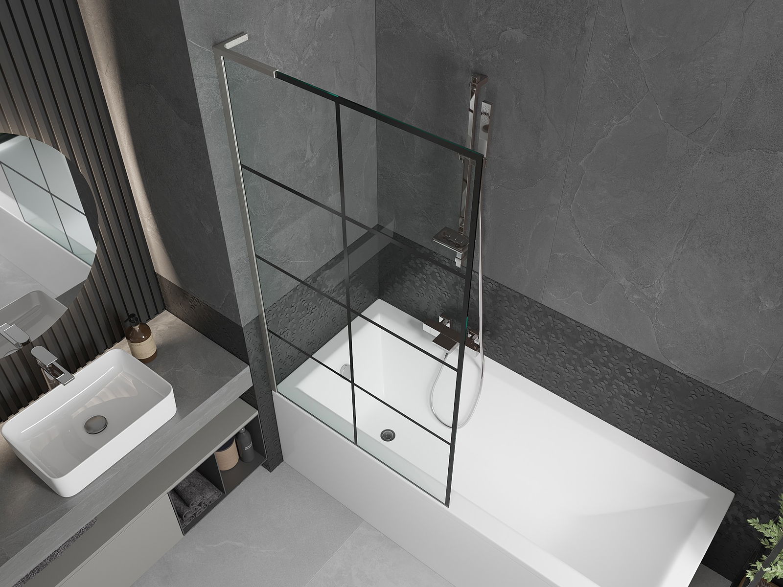 Mexen Next L paravan pentru cadă 1-foaie 90 x 150 cm, model grilaj negru, nichel periat - 895-090-000-03-77-97
