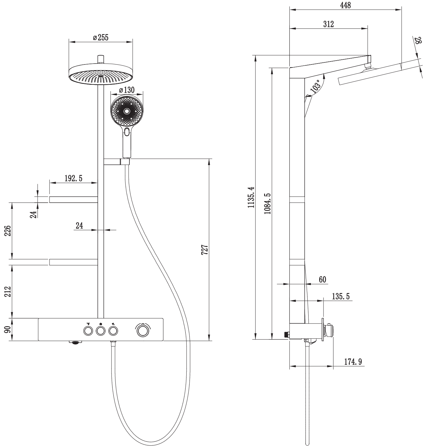 Înălțime: 1135 mm