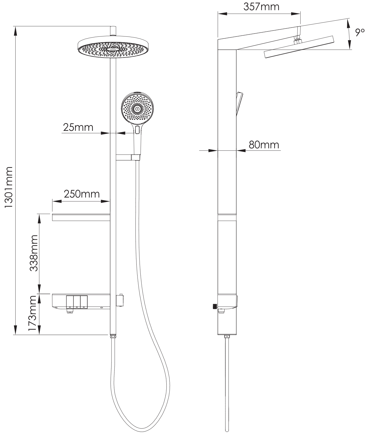 Jetul care iese din sistemul de duș imită ploaia naturală. Face ca picăturile de apă să cadă uniform pe întregul corp, clătind cosmeticele utilizate, precum și ameliorând stresul și tensiunea musculară. Relaxare zilnică în armonie cu natura.