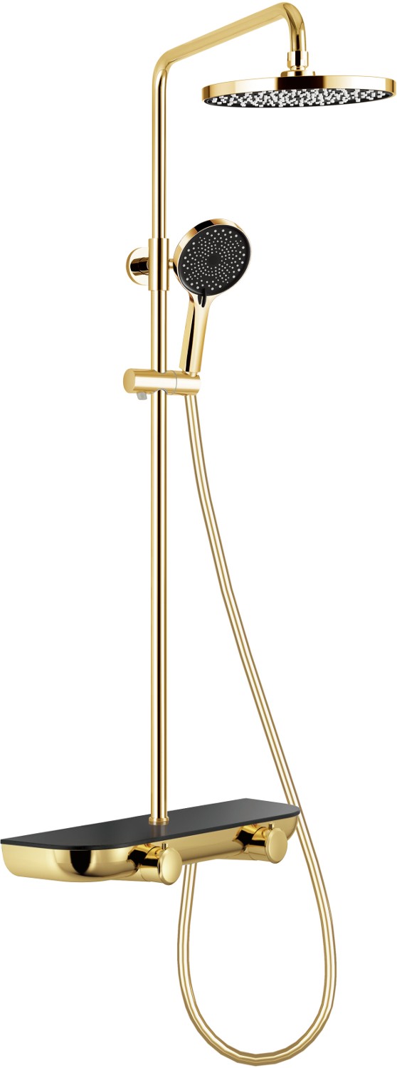 Bateria de duș cu raft pentru produse cosmetice este o soluție funcțională care îmbină confortul utilizării cu estetica. Raftul permite depozitarea produselor cosmetice, săpunurilor, șampoanelor și altor accesorii la îndemână în timpul băii.