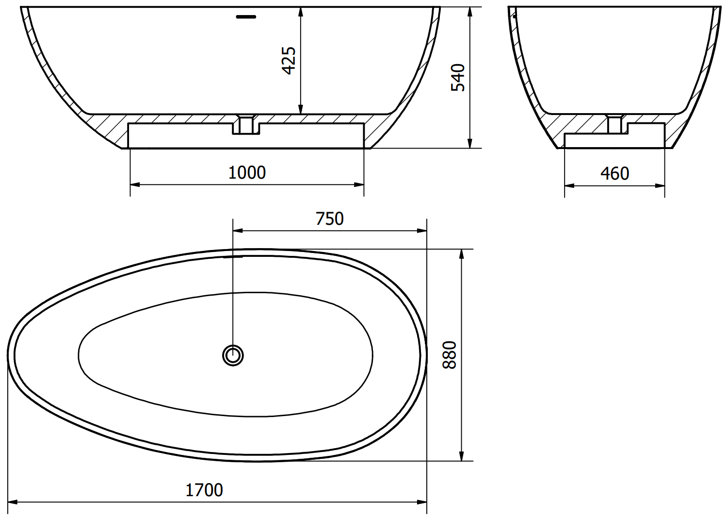 Mexen Imola cadă freestanding din conglomerat 170 x 88 cm, alb mat - 57281708500