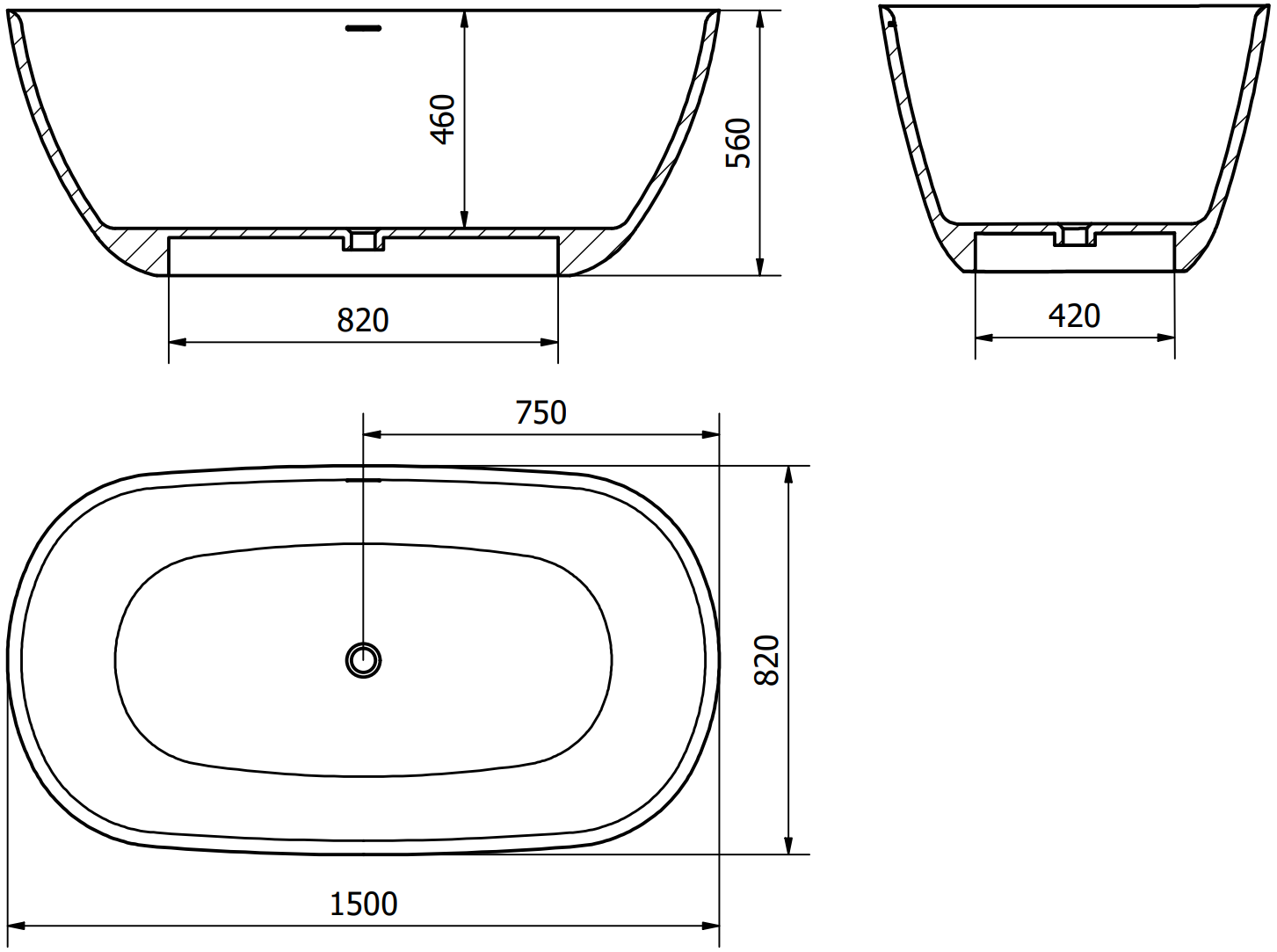 Mexen Como cadă de baie independentă din conglomerat 150 x 82 cm, beton mat - 57311508261