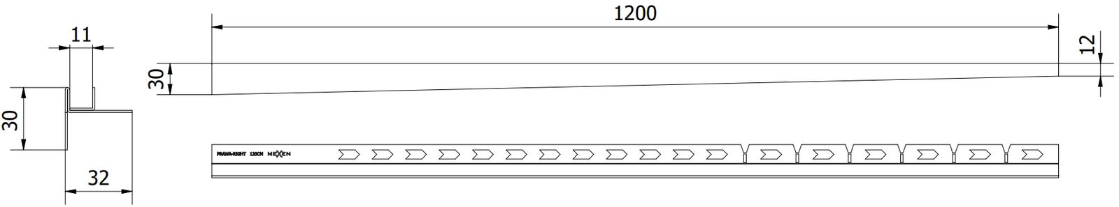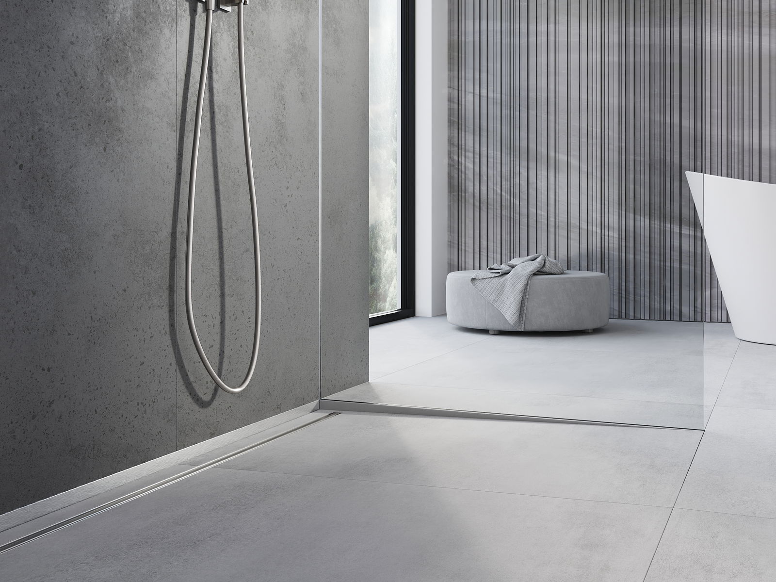 Marginea laterală a pragului induce o pantă unilaterală către scurgerea liniară fără a fi nevoie de realizarea așa-numitei „plic”