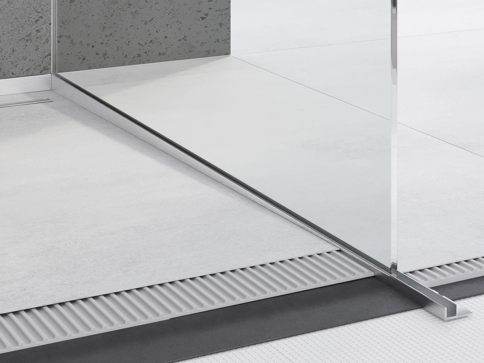 Pragul dispune de spațiu pentru montarea sticlei de duș, ceea ce nu doar simplifică procesul de instalare, ci permite și mascarea finisajului cu ajutorul siliconului