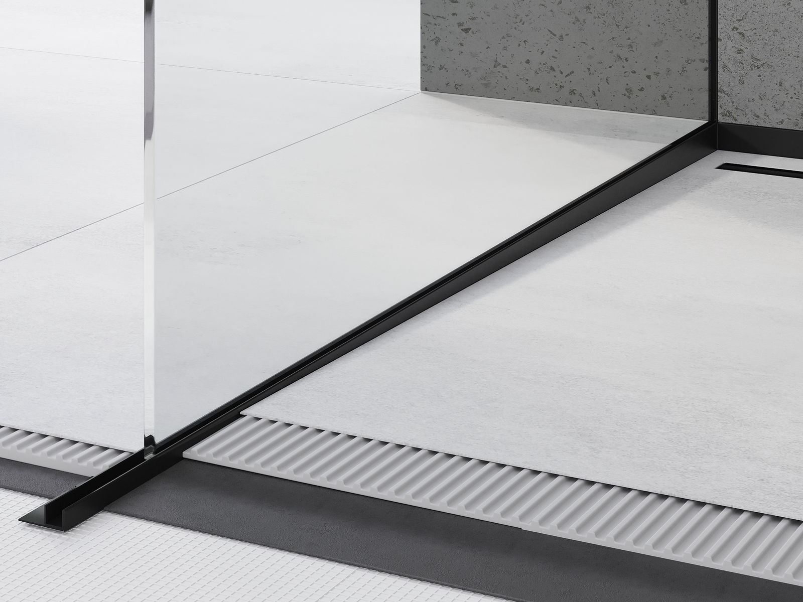 Șina dispune de un spațiu pentru montarea sticlei de duș, ceea ce nu doar facilitează procesul de instalare, dar permite și mascare a finisajului cu ajutorul siliconului