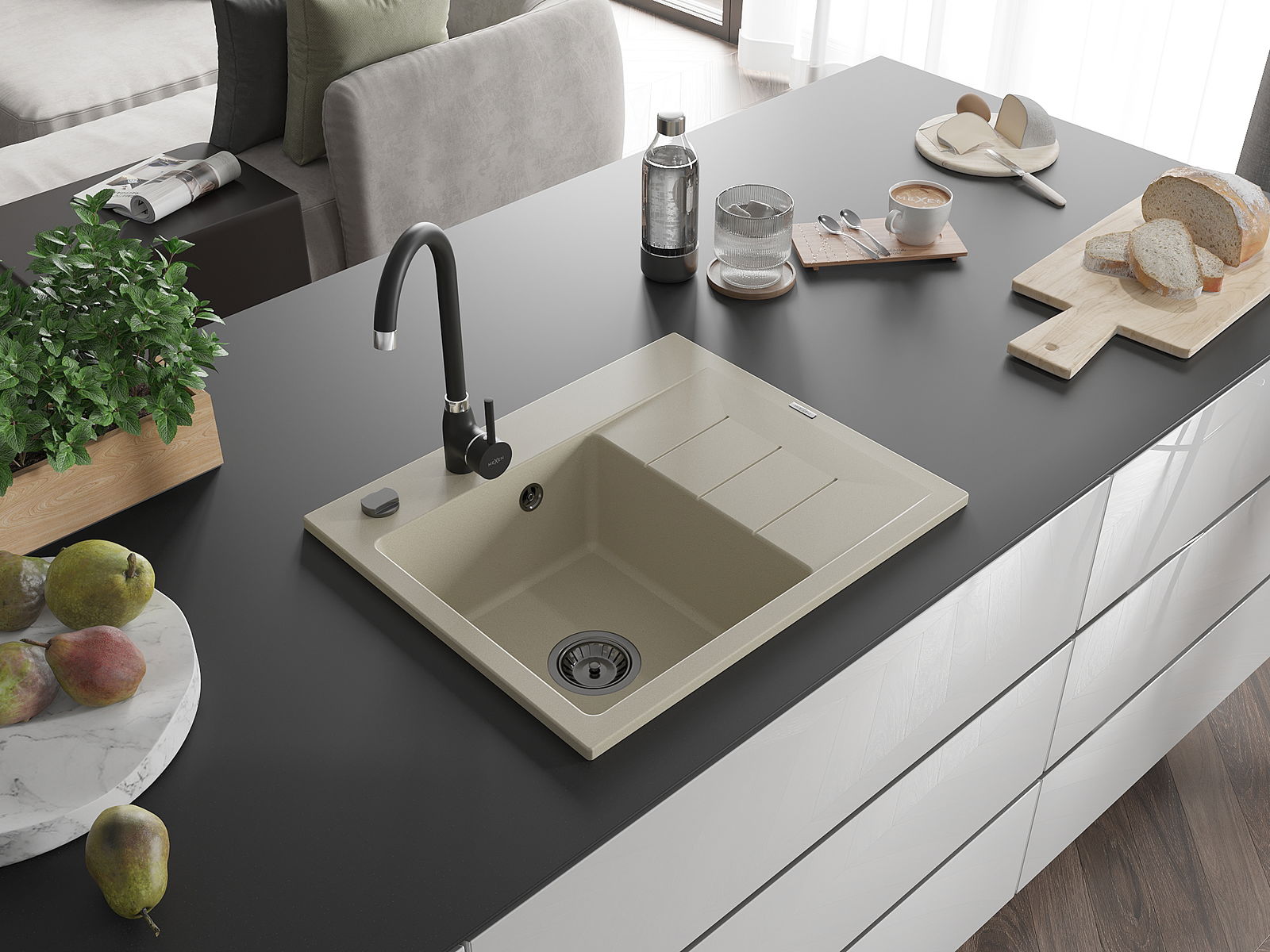Chiuveta a fost realizată din granit de înaltă calitate. Reprezintă un complement elegant și, mai presus de toate, practic pentru orice bucătărie, indiferent de stilul acesteia. Calitatea înaltă și durabilitatea granitului asigură o utilizare de lungă durată.