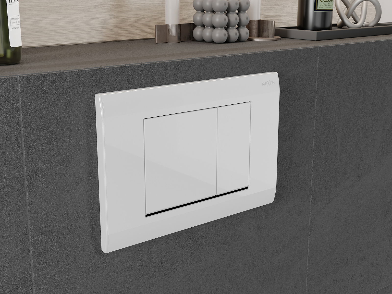 Produsul are 2 butoane pentru spălare. Un buton mare, care servește pentru a elibera o cantitate mai mare de apă de spălare, și un buton mic pentru cantități mai mici. În acest fel, utilizatorul poate ajusta cu ușurință cantitatea de apă utilizată la nevoile sale.