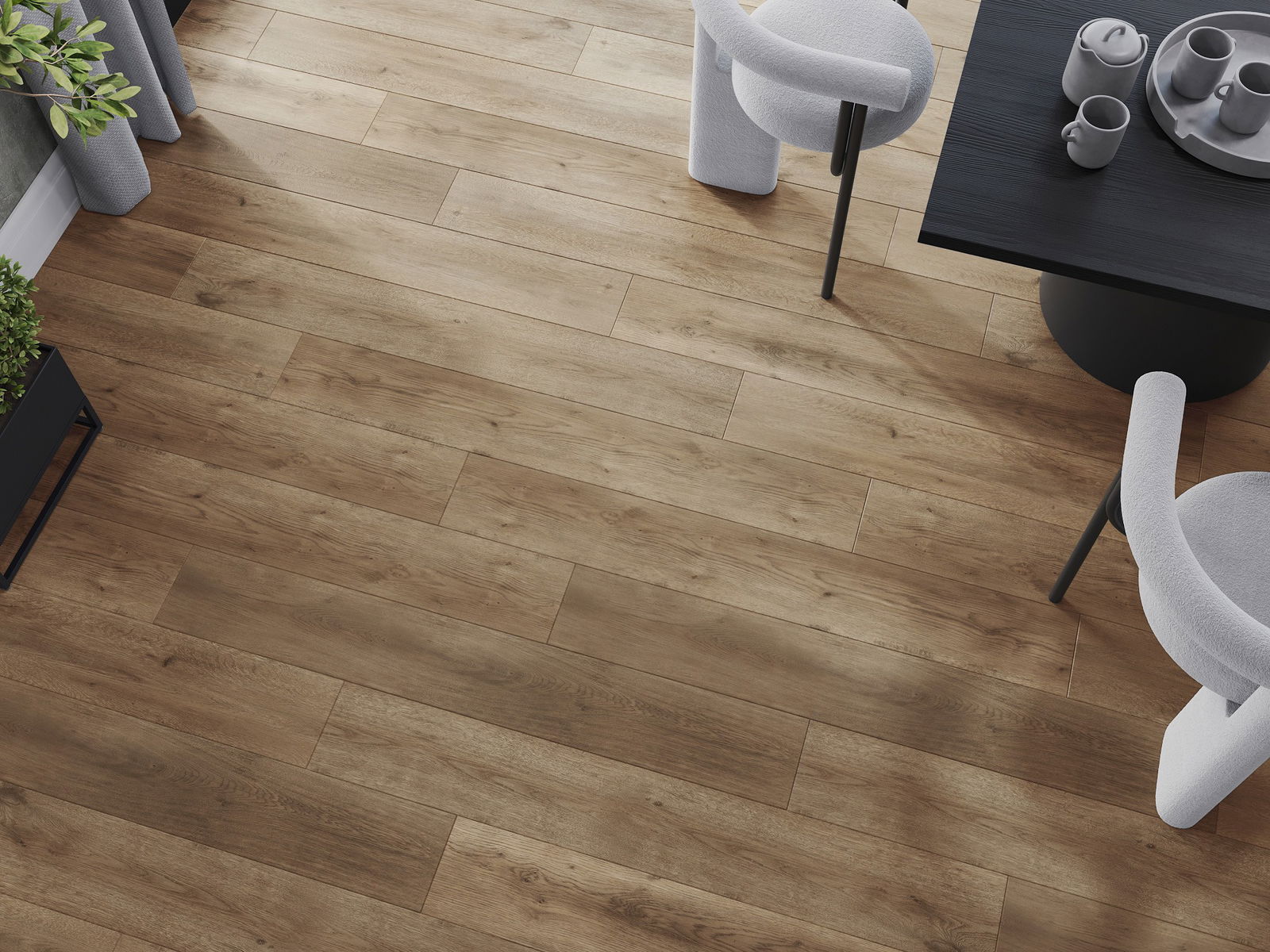 Pardoselile au o îmbinare pe cele 4 laturi - fiecare parte a fost frezată astfel încât, după montaj, să rezulte o conexiune în formă de V. Acest design face ca pardoseala să capete o structură mai pronunțată, adăugându-i profunzime și un caracter estetic. Acest efect este deosebit de apreciat în aranjamentele moderne, unde detaliile subliniază aspectul unic al interiorului.