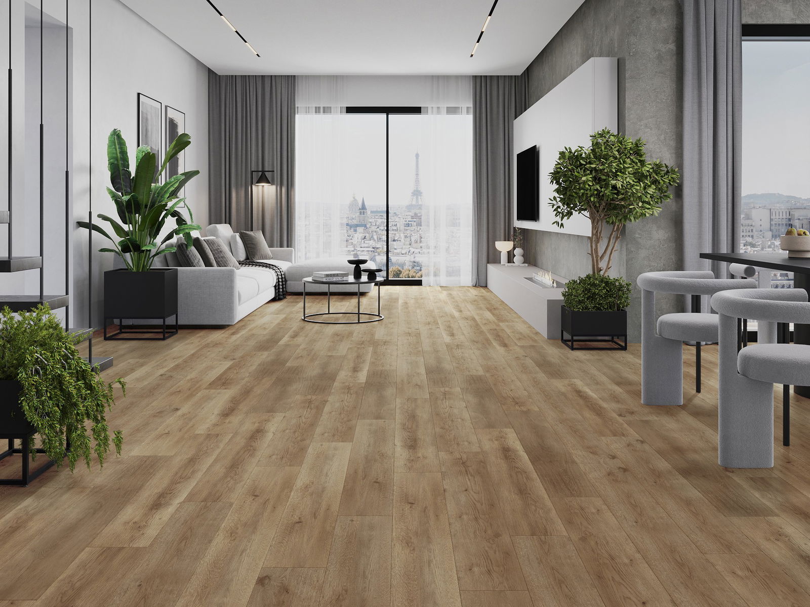 Panourile din vinil se caracterizează printr-o construcție inovatoare de 6,5 mm și impermeabilitate de 100%, ceea ce le face o alegere excelentă pentru orice interior. Datorită suportului IXPE integrat de 1,5 mm grosime, montajul este simplu și rapid, oferind o izolație acustică optimă. Clasa de utilizare 32 garantează o rezistență ridicată la deteriorare și zgârieturi. Suprafața care facilitează curățarea și compatibilitatea cu încălzirea prin pardoseală fac ca acestea să fie soluția ideală atât pentru locuințe, cât și pentru birouri.