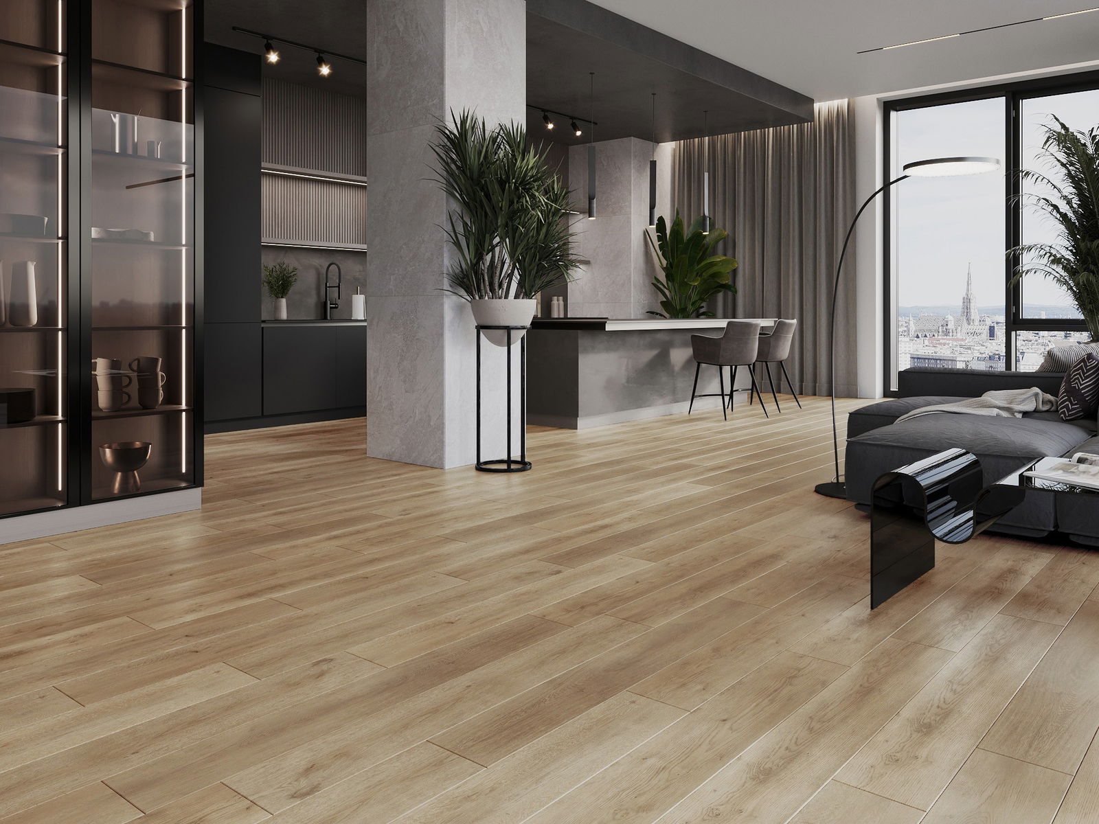 Panoul se remarcă prin inele subtile și presări care imită perfect specia de lemn aleasă. Datorită acestui efect, încăperea capătă un caracter elegant, dar în același timp natural și primitor.