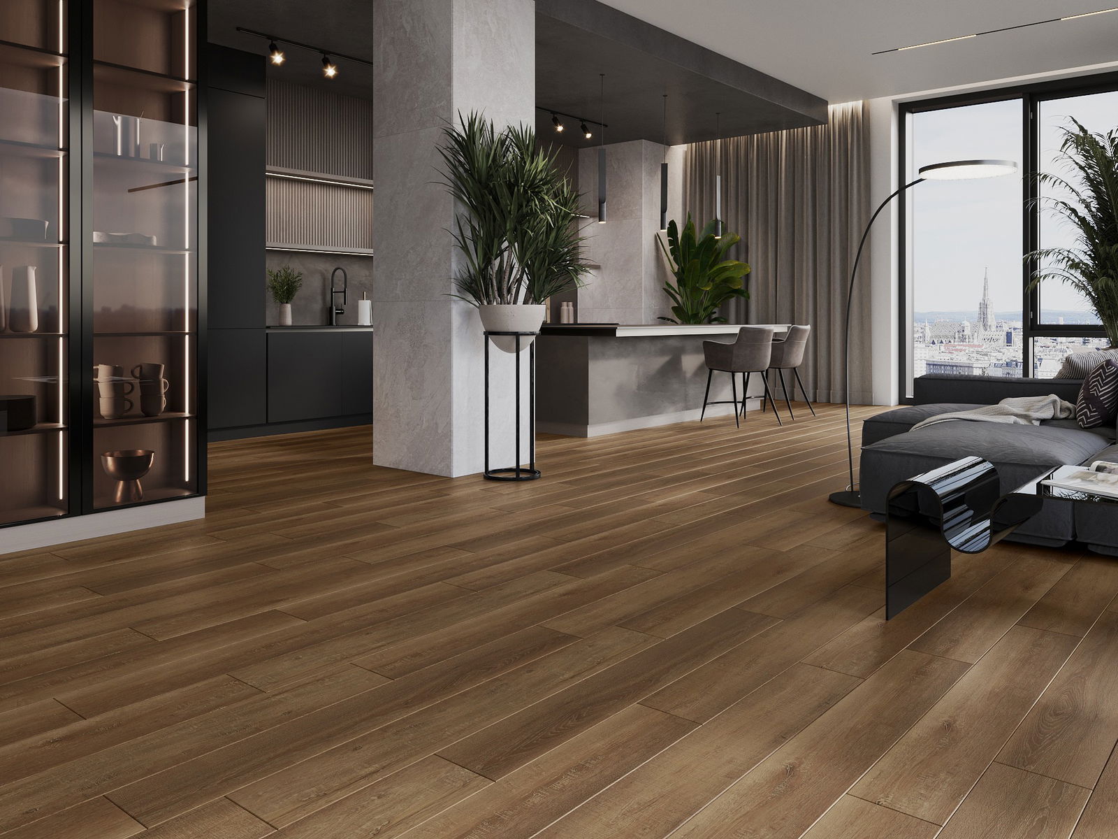 Panoul se remarcă prin inele subtile și presări care imită perfect specia de lemn aleasă. Datorită acestui efect, încăperea capătă un caracter elegant, dar în același timp natural și primitor.
