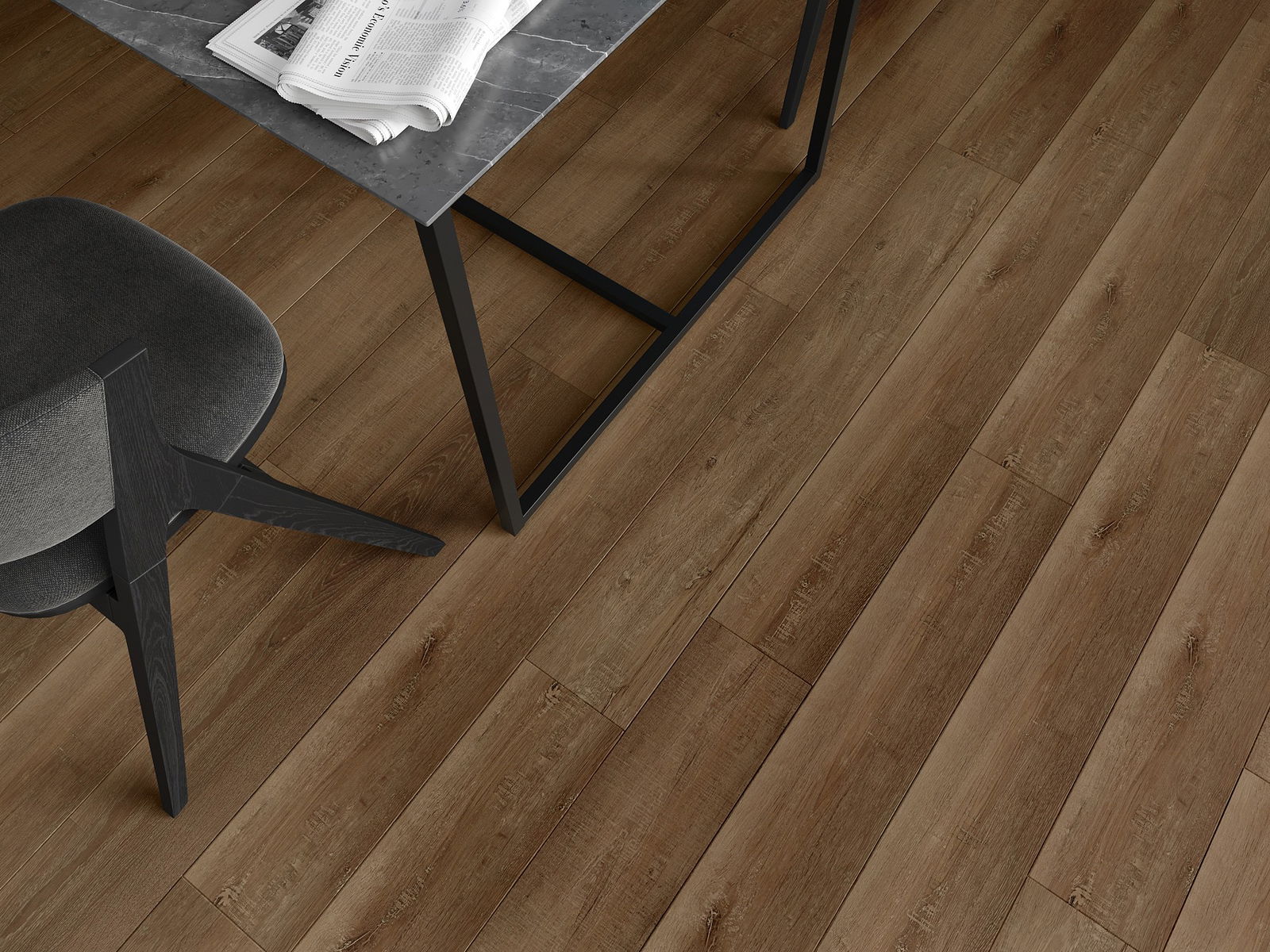 Pardoselile au o îmbinare pe cele 4 laturi - fiecare parte a fost frezată astfel încât, după montaj, să rezulte o conexiune în formă de V. Acest design face ca pardoseala să capete o structură mai pronunțată, adăugându-i profunzime și un caracter estetic. Acest efect este deosebit de apreciat în aranjamentele moderne, unde detaliile subliniază aspectul unic al interiorului.