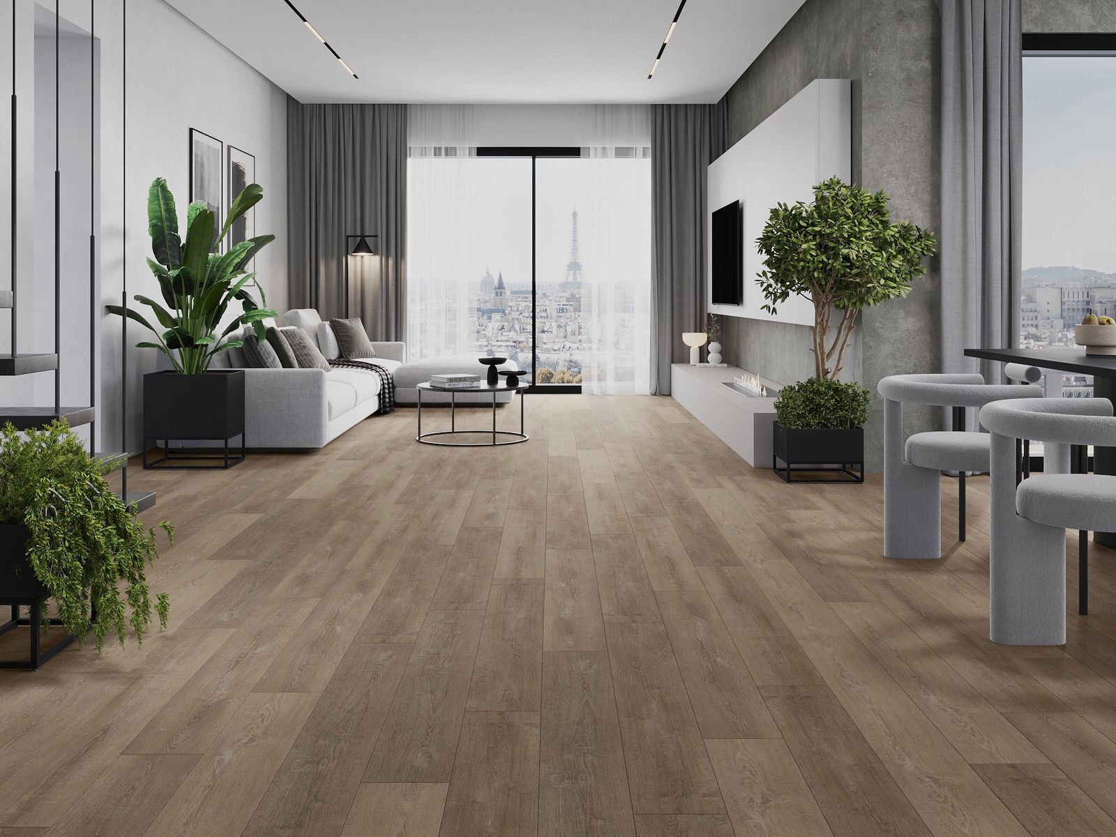 Mexen Windsor este o probă de panouri vinilice de înaltă calitate, cu dimensiunile 1240 x 182 mm și grosimea de 6,5 mm, garantând soliditate și durabilitate. Panoul se caracterizează prin rezistență 100% la apă și la deteriorări mecanice și zgârieturi, ceea ce îl face o alegere ideală pentru diverse încăperi. Datorită substratului integrat IXPE de 1,5 mm și V-fugelui pe patru laturi, montajul este rapid și ușor. Suprafața facilitează curățarea, iar clasa de anti-alunecare DS asigură siguranța utilizării.