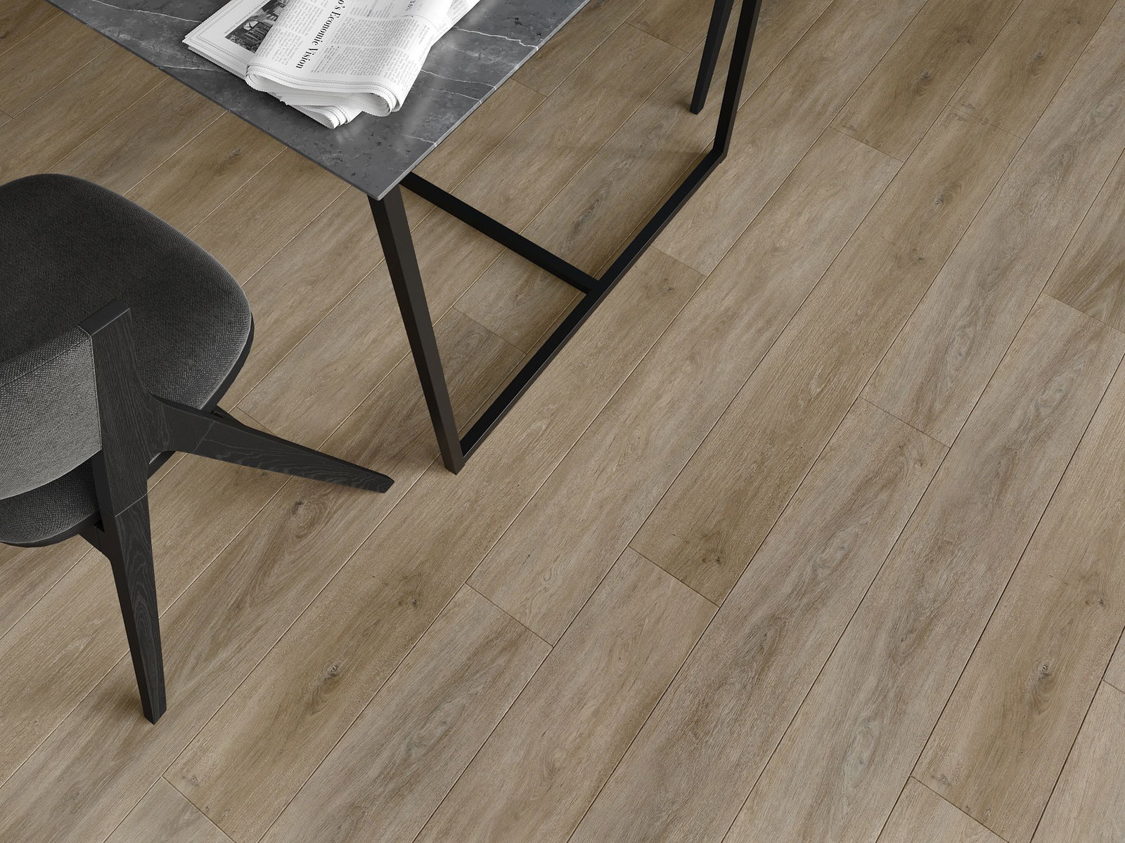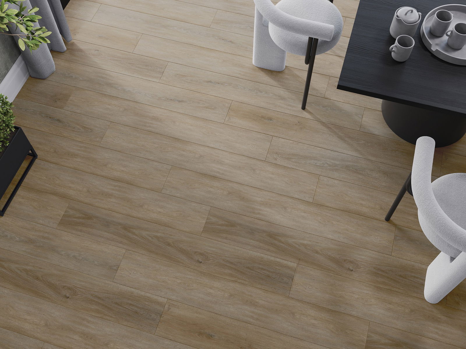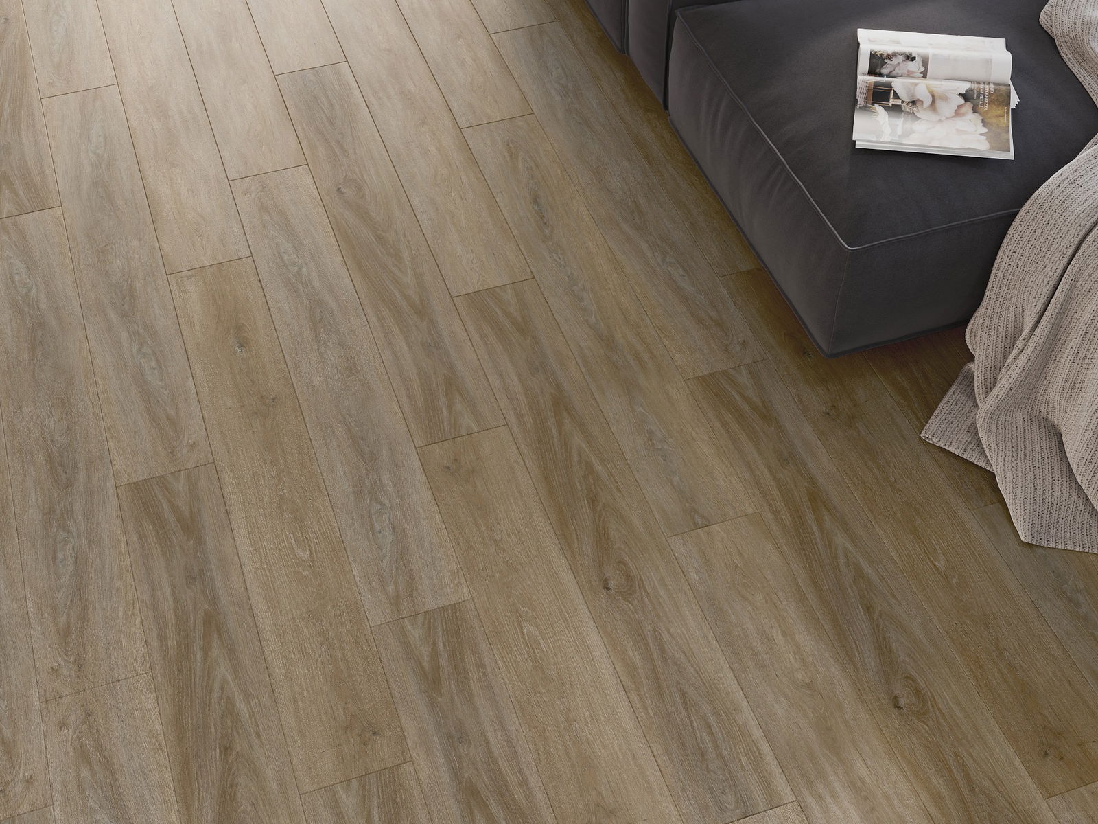 Pardoselile au o îmbinare pe cele 4 laturi - fiecare parte a fost frezată astfel încât, după montaj, să rezulte o conexiune în formă de V. Acest design face ca pardoseala să capete o structură mai pronunțată, adăugându-i profunzime și un caracter estetic. Acest efect este deosebit de apreciat în aranjamentele moderne, unde detaliile subliniază aspectul unic al interiorului.
