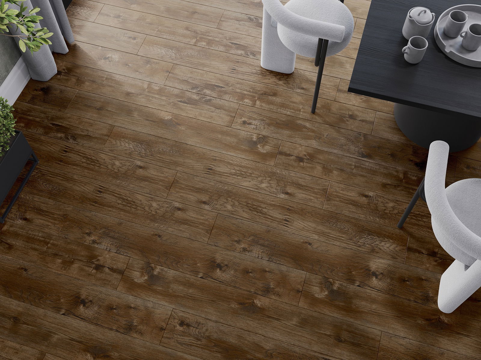 Pardoselile au o îmbinare pe cele 4 laturi - fiecare parte a fost frezată astfel încât, după montaj, să rezulte o conexiune în formă de V. Acest design face ca pardoseala să capete o structură mai pronunțată, adăugându-i profunzime și un caracter estetic. Acest efect este deosebit de apreciat în aranjamentele moderne, unde detaliile subliniază aspectul unic al interiorului.