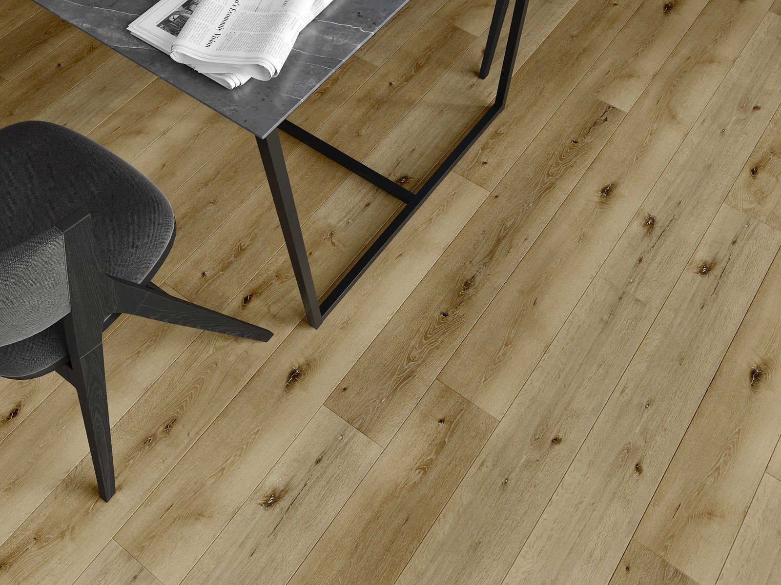 Pardoselile au o îmbinare pe cele 4 laturi - fiecare parte a fost frezată astfel încât, după montaj, să rezulte o conexiune în formă de V. Acest design face ca pardoseala să capete o structură mai pronunțată, adăugându-i profunzime și un caracter estetic. Acest efect este deosebit de apreciat în aranjamentele moderne, unde detaliile subliniază aspectul unic al interiorului.