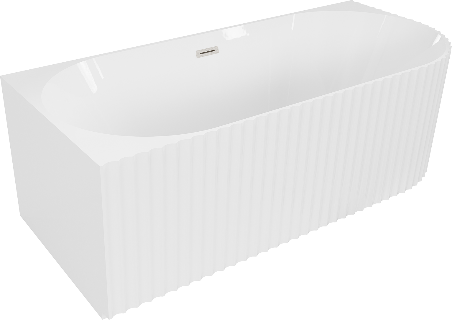 Mexen Gia cadă freestanding colțar striată stânga 150 x 75 cm, alb lucios, preaplin nichel periat - 52701507500L-97