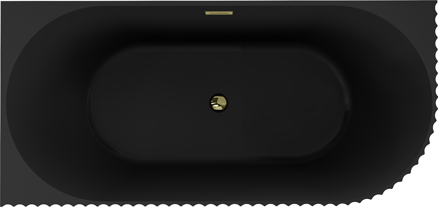 Mexen Gia cadă de baie independentă colț rotunjit stânga 150 x 75 cm, negru mat, preaplin auriu - 52701507571L-50