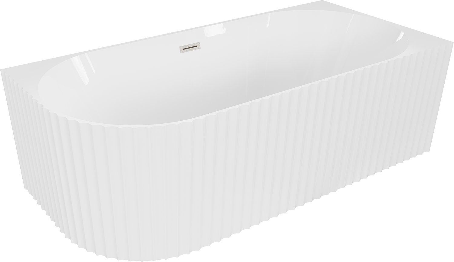 Mexen Gia cadă de sine stătătoare colț dreapta canelată 150 x 75 cm, alb lucios, preaplin nichel periat - 52701507500P-97