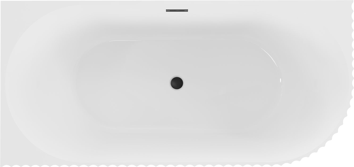 Mexen Gia cadă de baie freestanding colțară cu nervuri dreapta 170 x 80 cm, alb lucios, preaplin negru - 52701708000P-70