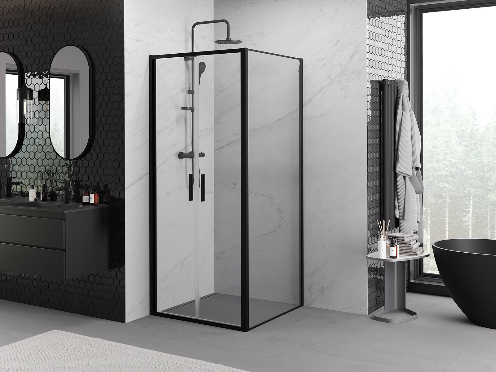 Mexen Rio cabină de duș pătrată 90 x 90 cm, transparentă, neagră - 860-090-090-70-00
