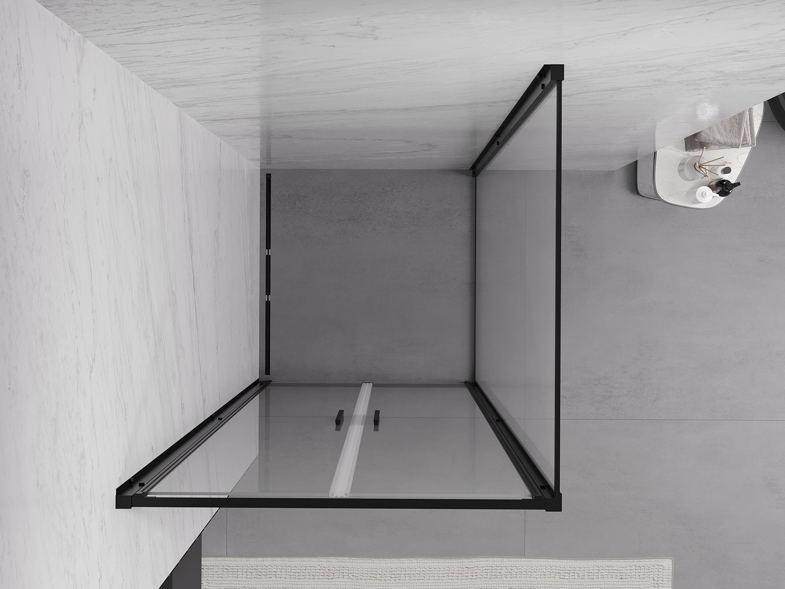 Produsul poate fi montat fie pe cabina de duș, fie direct pe podea, în funcție de nevoi. Metoda de montare universală permite adaptarea produsului la diferite tipuri de băi și configurații de spațiu.