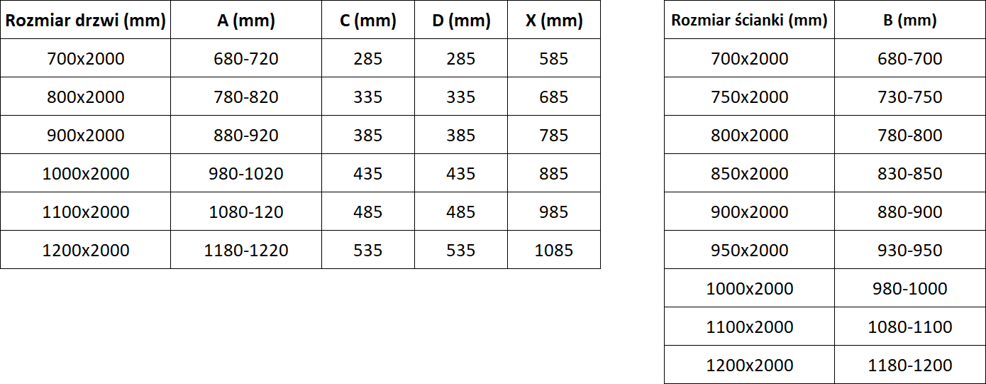 Dimensiune: 100x90 cm (ușă 100 cm, perete 90 cm)