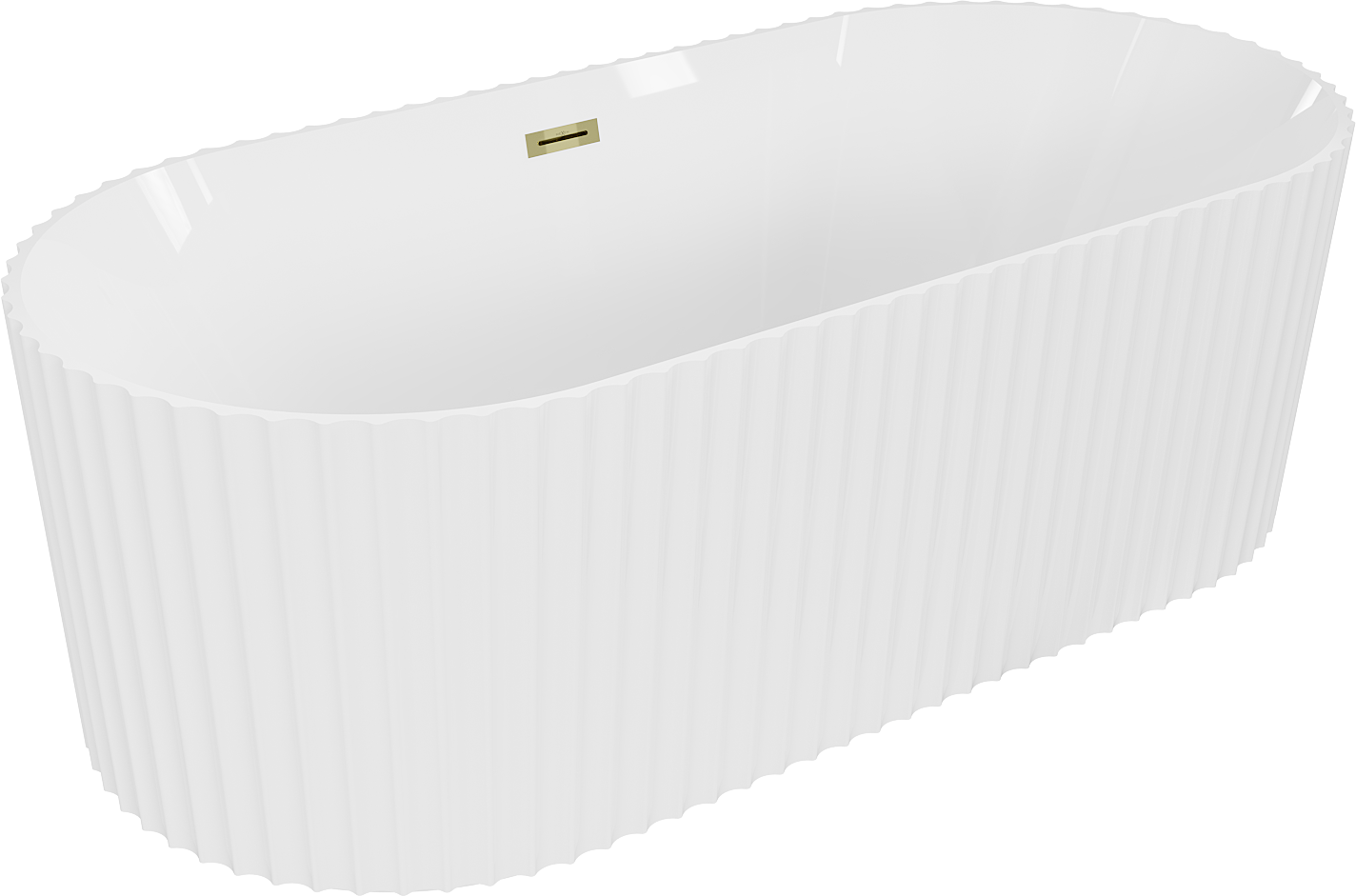 Mexen Paola cadă freestanding cu striații 150 x 75 cm, alb lucios, preaplin auriu - 52721507500-50