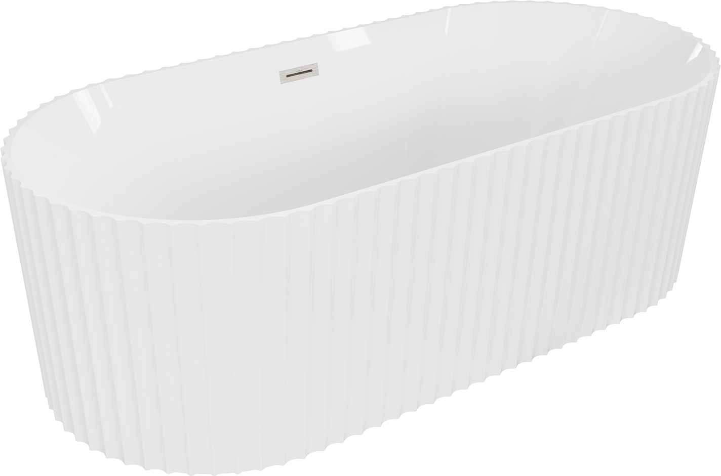 Mexen Paola cadă freestanding canelată 150 x 75 cm, alb lucios, preaplin nichel periat - 52721507500-97