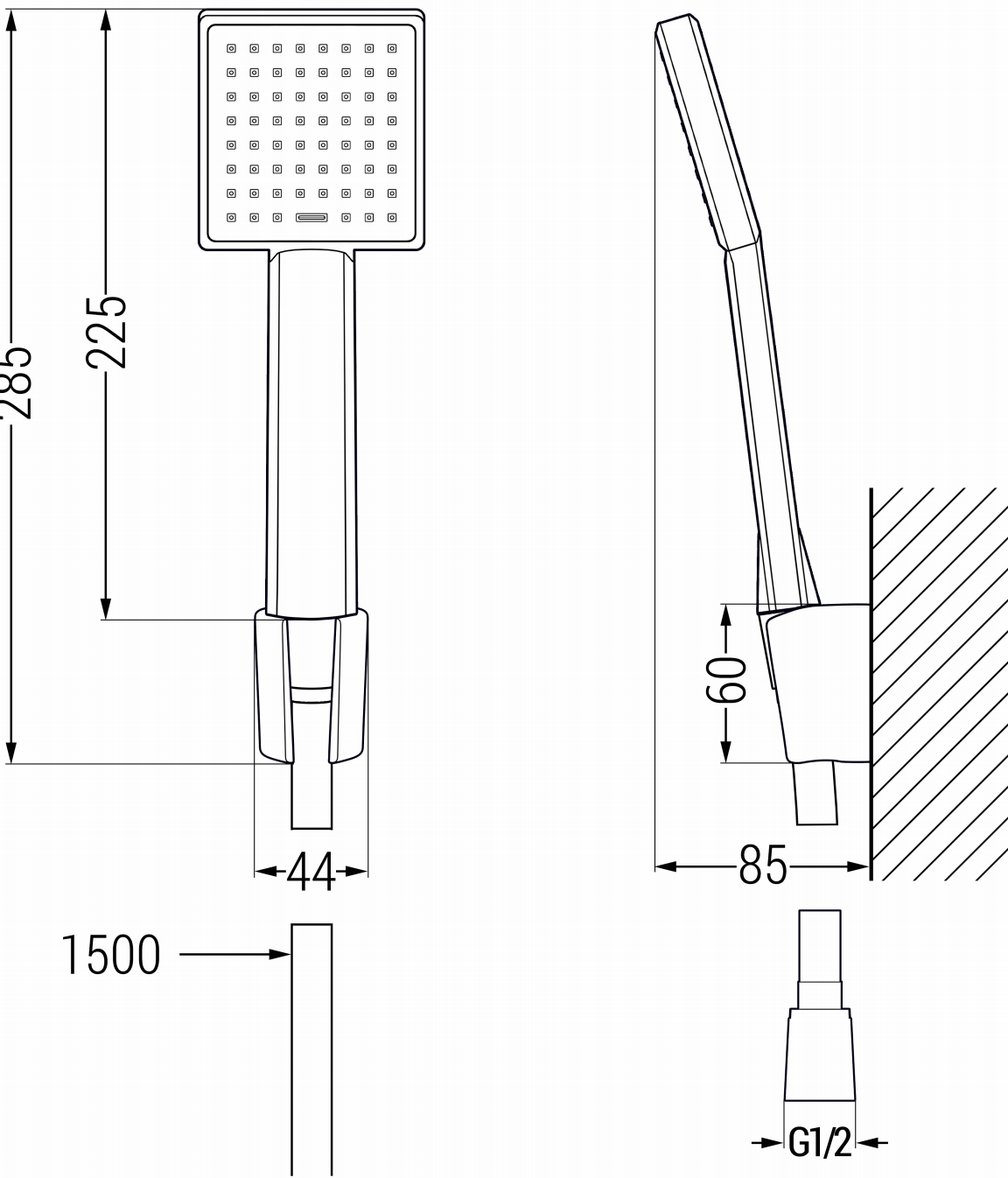 Înălțimea dușului: 225 mm