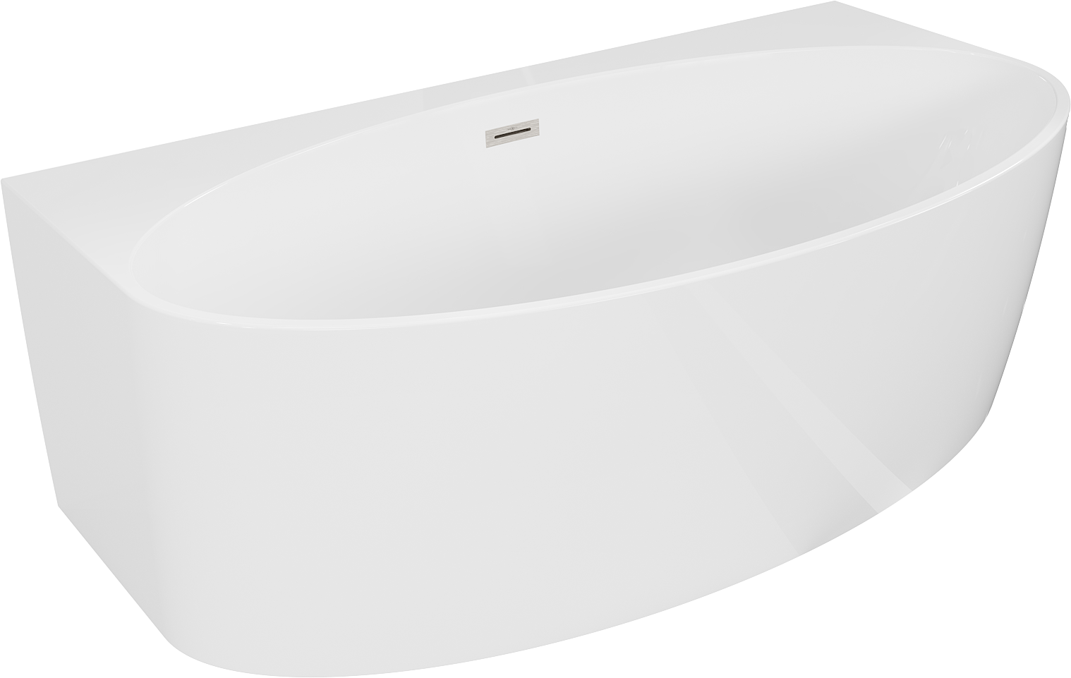 Mexen Bruna cadă de baie independentă, de perete, 150 x 82 cm, alb lucios, preaplin nichel periat - 52731508200-97