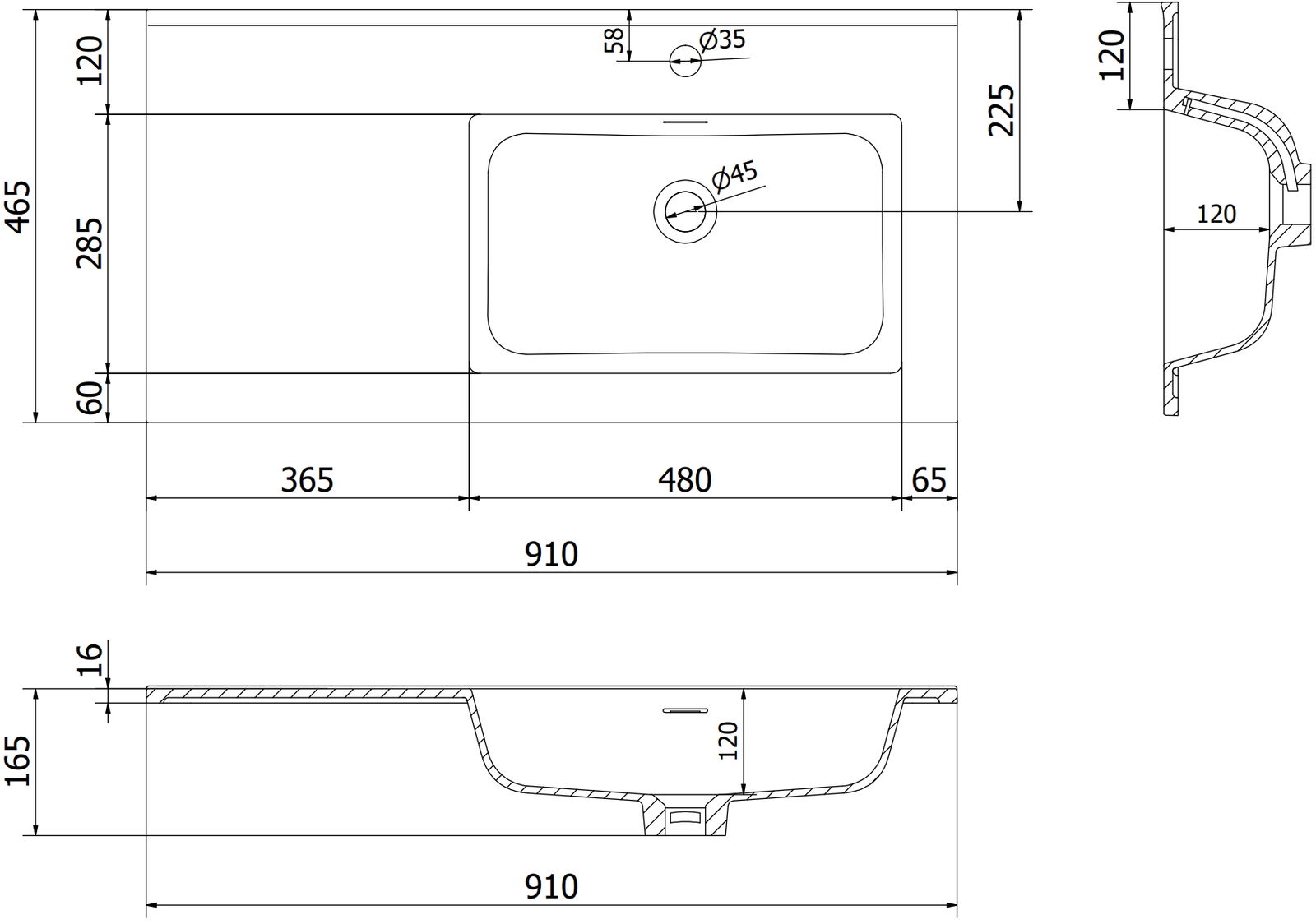 Mexen Otis chiuvetă încastrată în blat dreapta 91 x 46,5 cm, negru mat - 25189071P