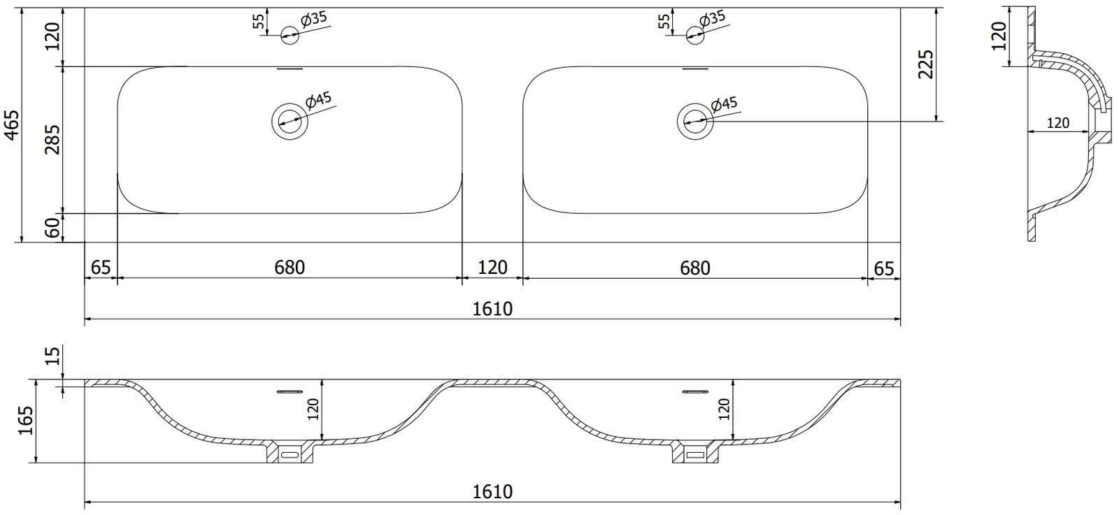 Mexen Vela chiuvetă dublă încastrată în blat 161 x 46,5 cm, alb mat - 25231601D