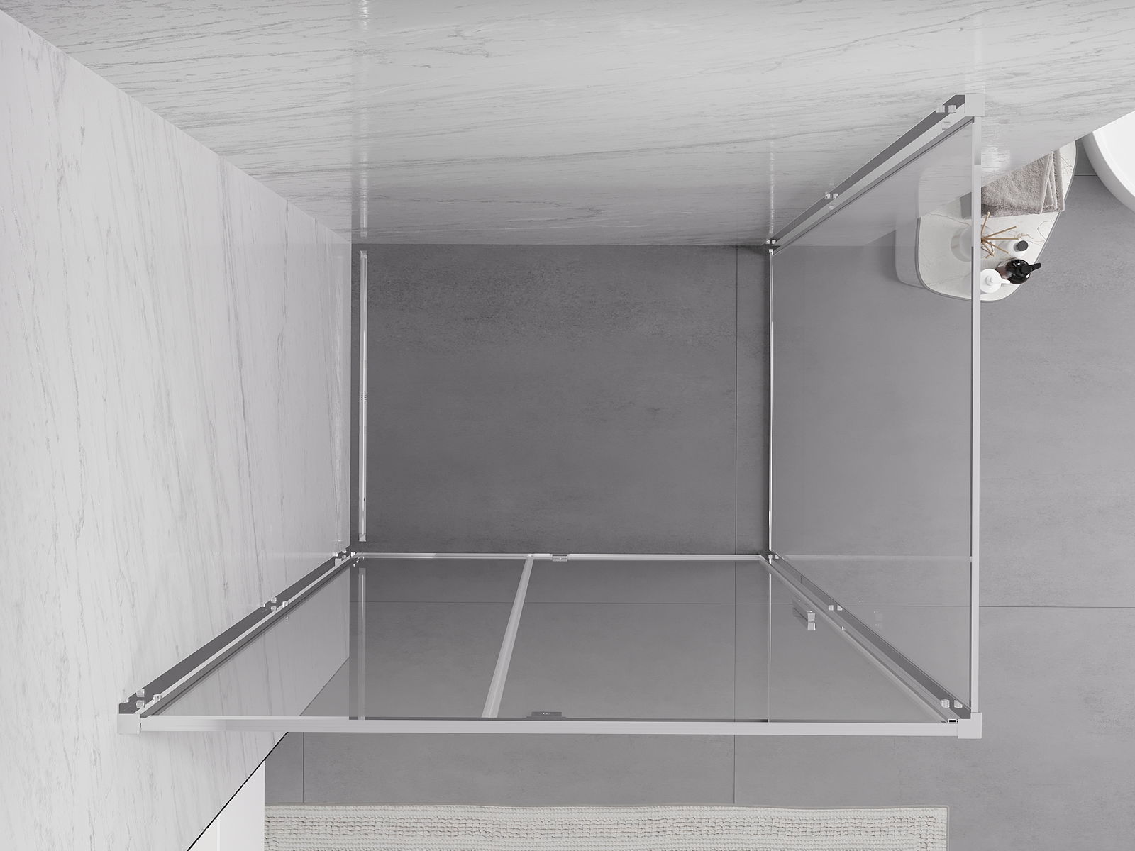 Produsul poate fi montat fie pe cabina de duș, fie direct pe podea, în funcție de nevoi. Metoda de montare universală permite adaptarea produsului la diferite tipuri de băi și configurații de spațiu.