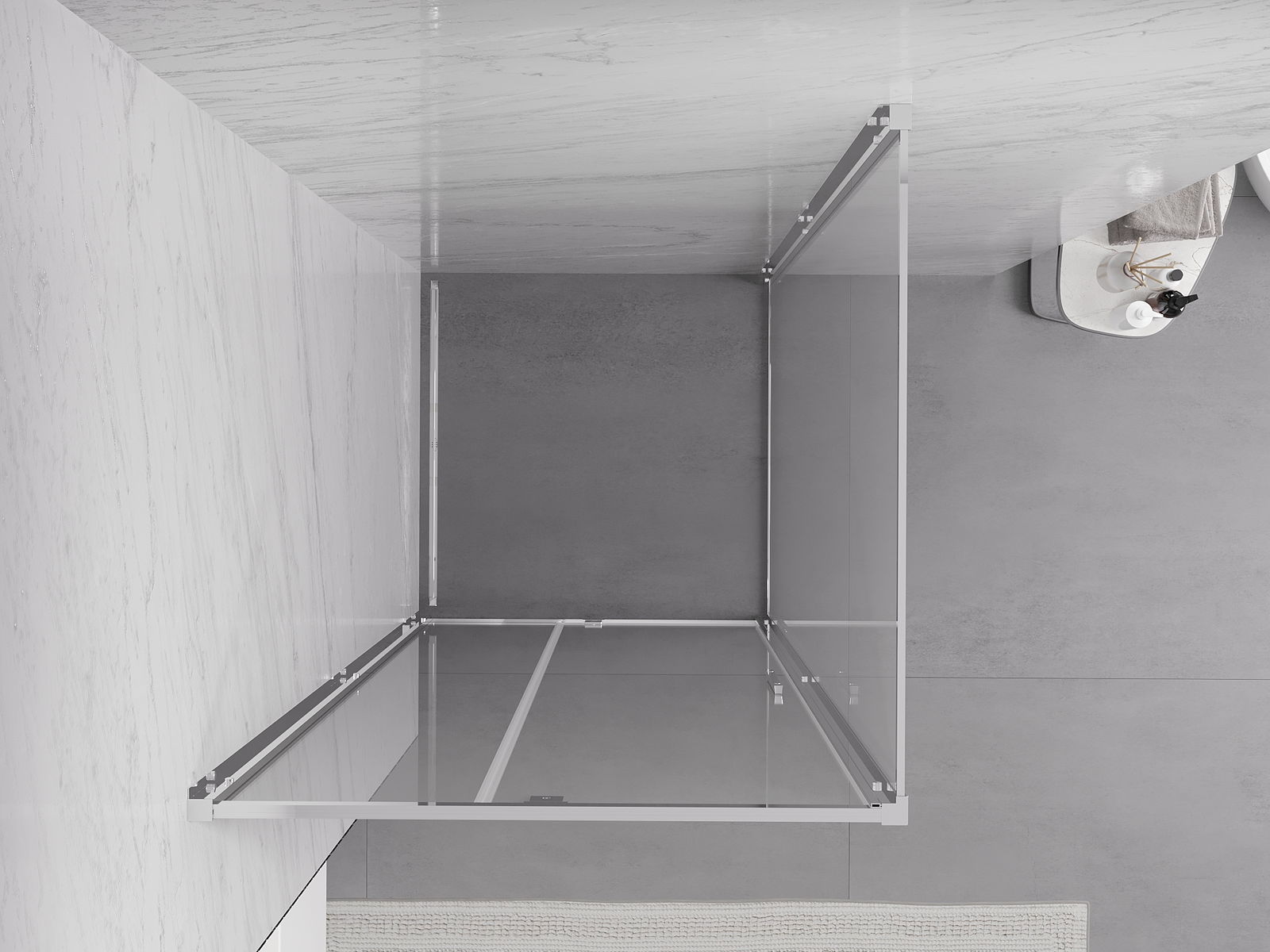 Produsul poate fi montat fie pe cabina de duș, fie direct pe podea, în funcție de nevoi. Metoda de montare universală permite adaptarea produsului la diferite tipuri de băi și configurații de spațiu.
